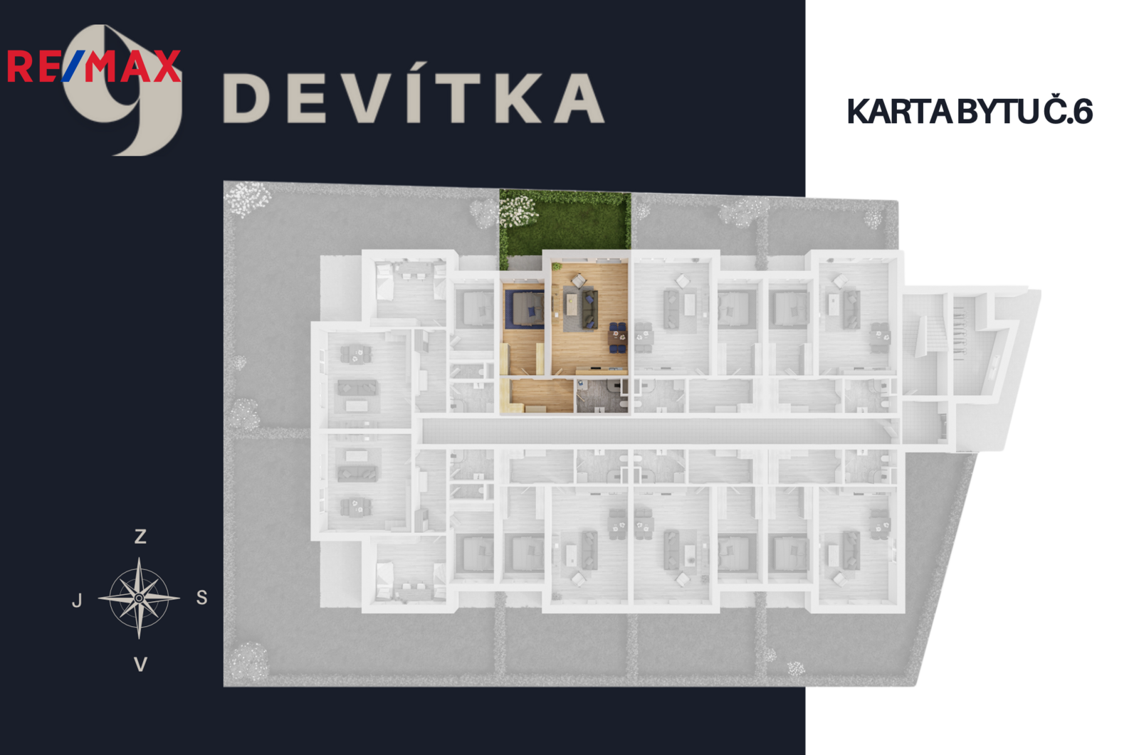 Představuji Vám exkluzivní nabídku prakticky řešené bytové jednotky č. 6 o dispozici 2KK s neprůchozími pokoji a zahradou.