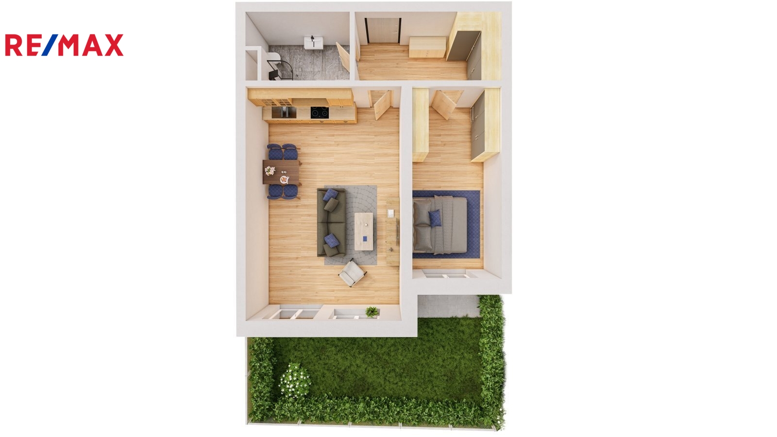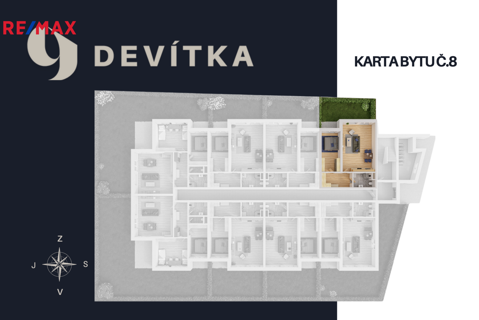 Představuji Vám exkluzivní nabídku prakticky řešené bytové jednotky č. 8 o dispozici 2KK s neprůchozími pokoji a zahradou.