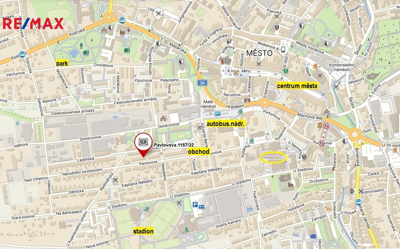 Dům se nachází v pěkné a klidné lokalitě, v blízkosti je obchod Qanto, zdravotní středisko, nemocnice a stadion. Do centra města je to pěšky cca 13 až 15 minut necelý 1km.