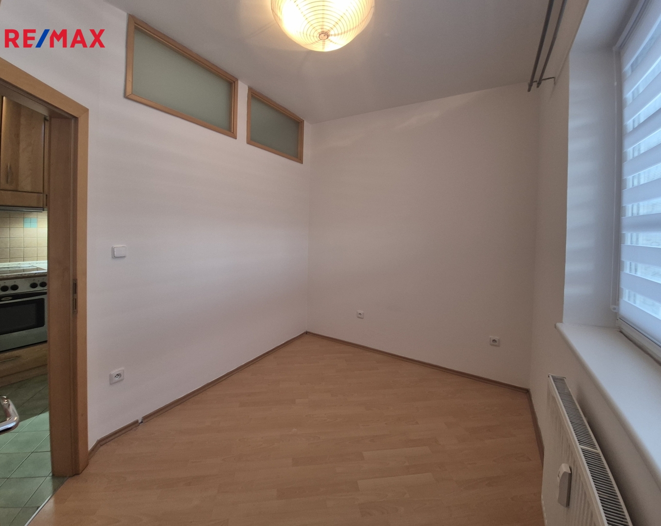 Byt má plastová okna včetně nových vnitřních rolet den/noc, venkovních rolet a pěknou prostornou kuchyňskou linku se spotřebiči.
