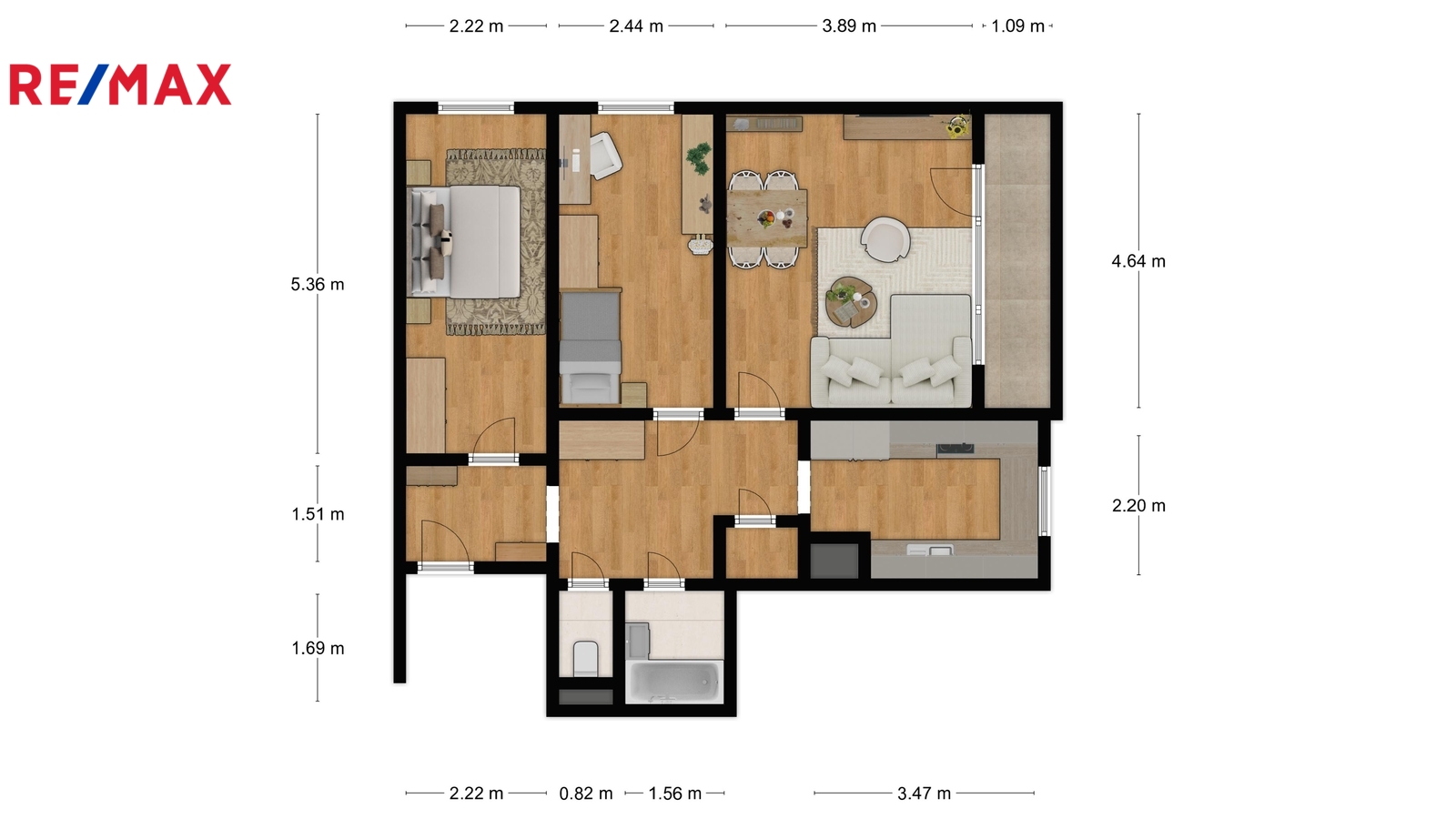 V ložnici zůstane nábytek. V blízké budoucnosti se plánují rekonstrukce lodžií, což přispěje k dalšímu zhodnocení tohoto bytu. Jednou z předností tohoto bytu jsou izolované stropy sklepů, které přispívají k úsporám energií.