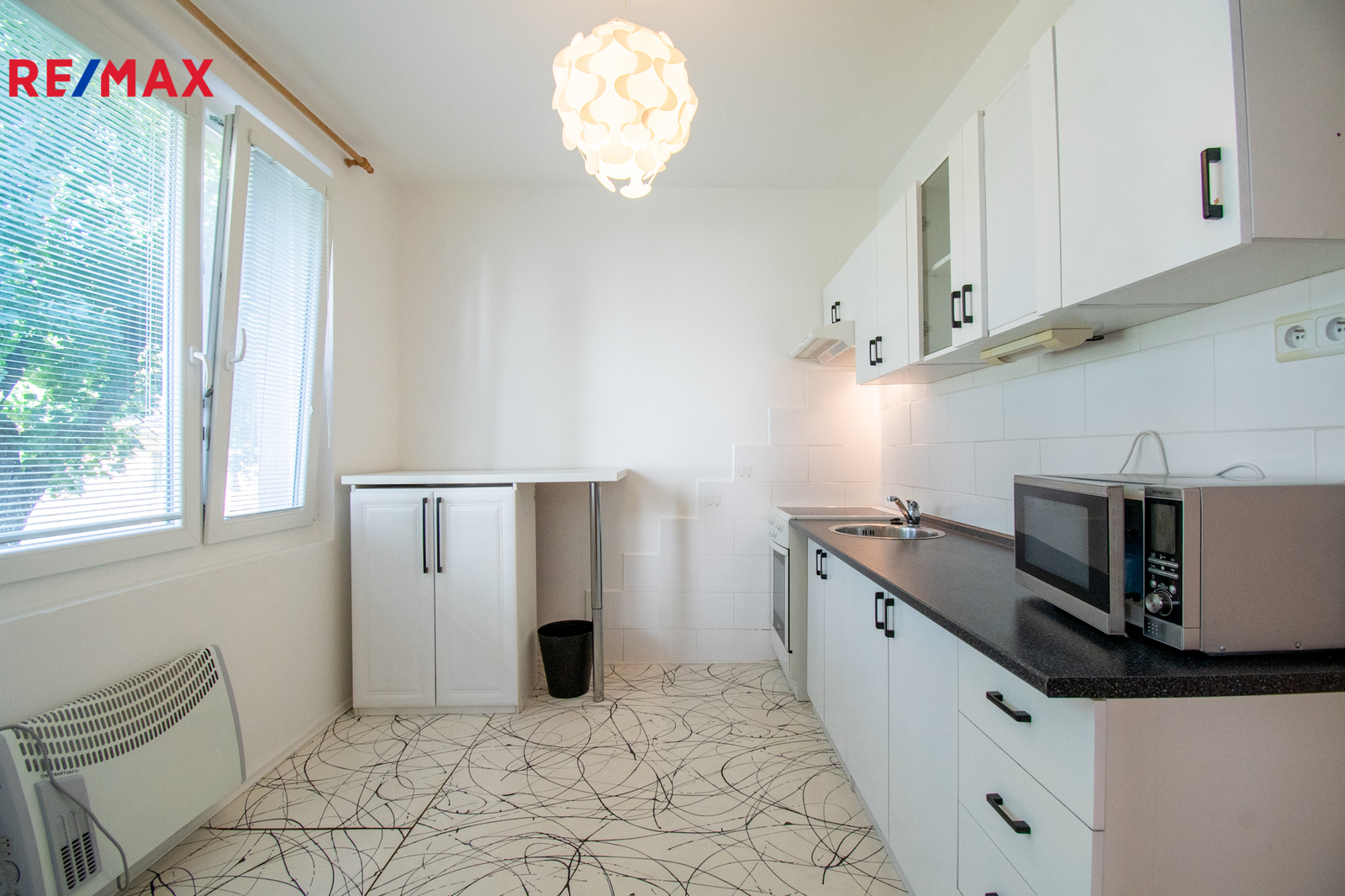 Vytápění bytu je řešeno přímotopy v každé místnosti a ohřev vody zajišťuje elektrický bojler.
