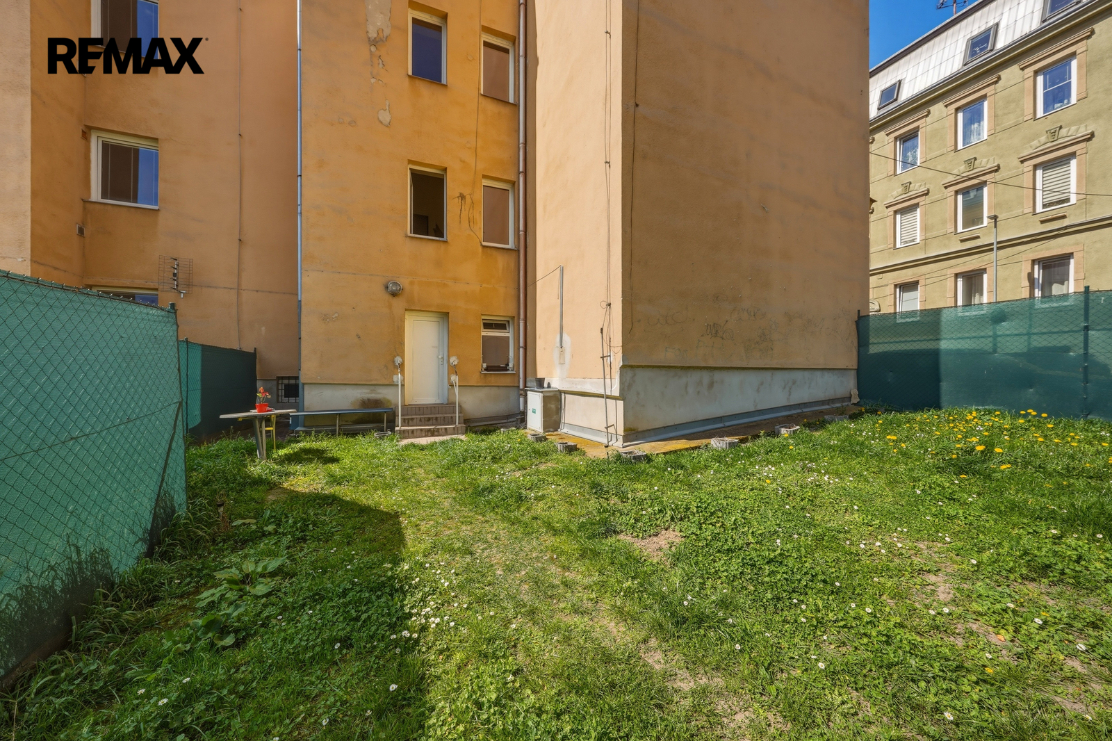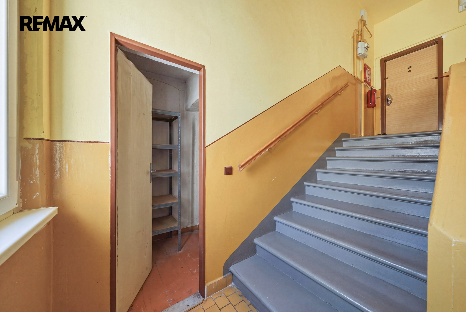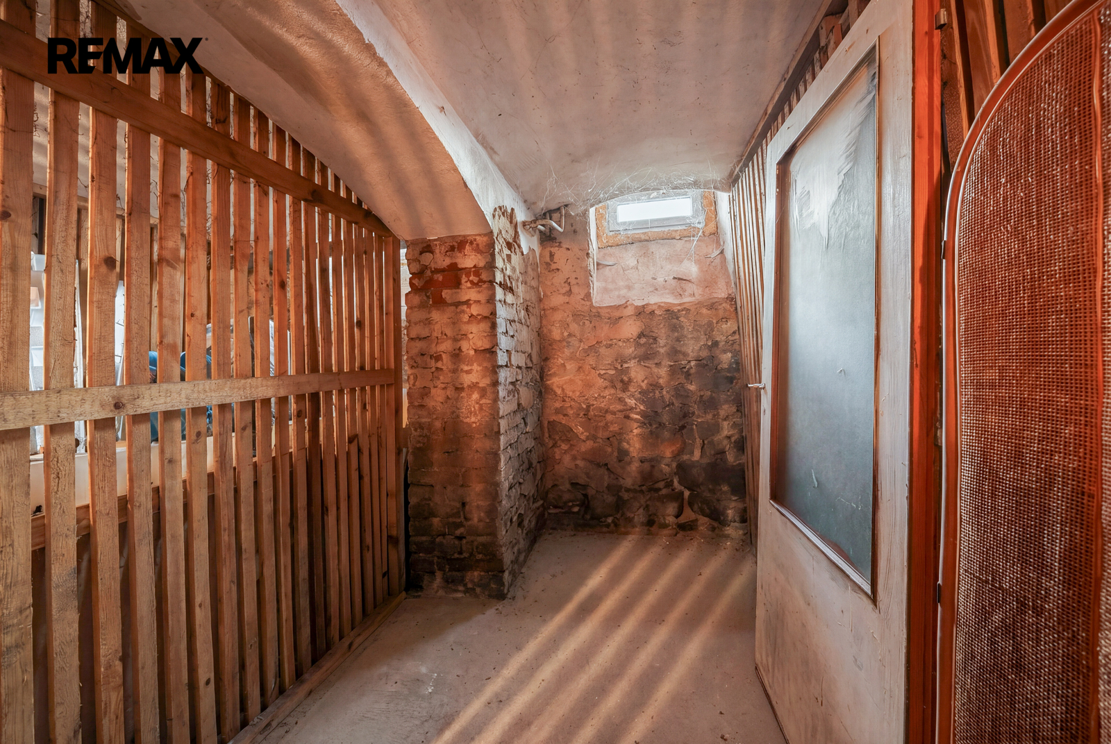 Velkou výhodou je praktické zázemí v podobě sklepní kóje a komory umístěné v mezipatře, které poskytují dostatek úložného prostoru. Obyvatelé domu mohou dále využívat společnou půdu přímo vedle bytu a také zahradu za domem.