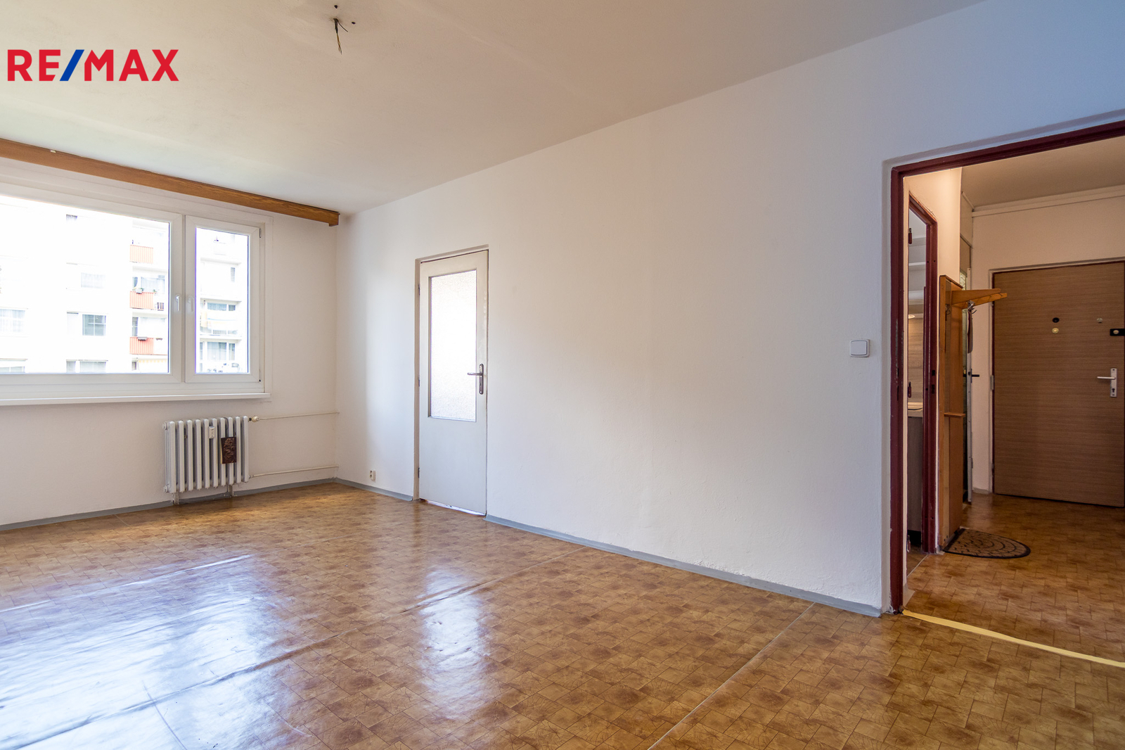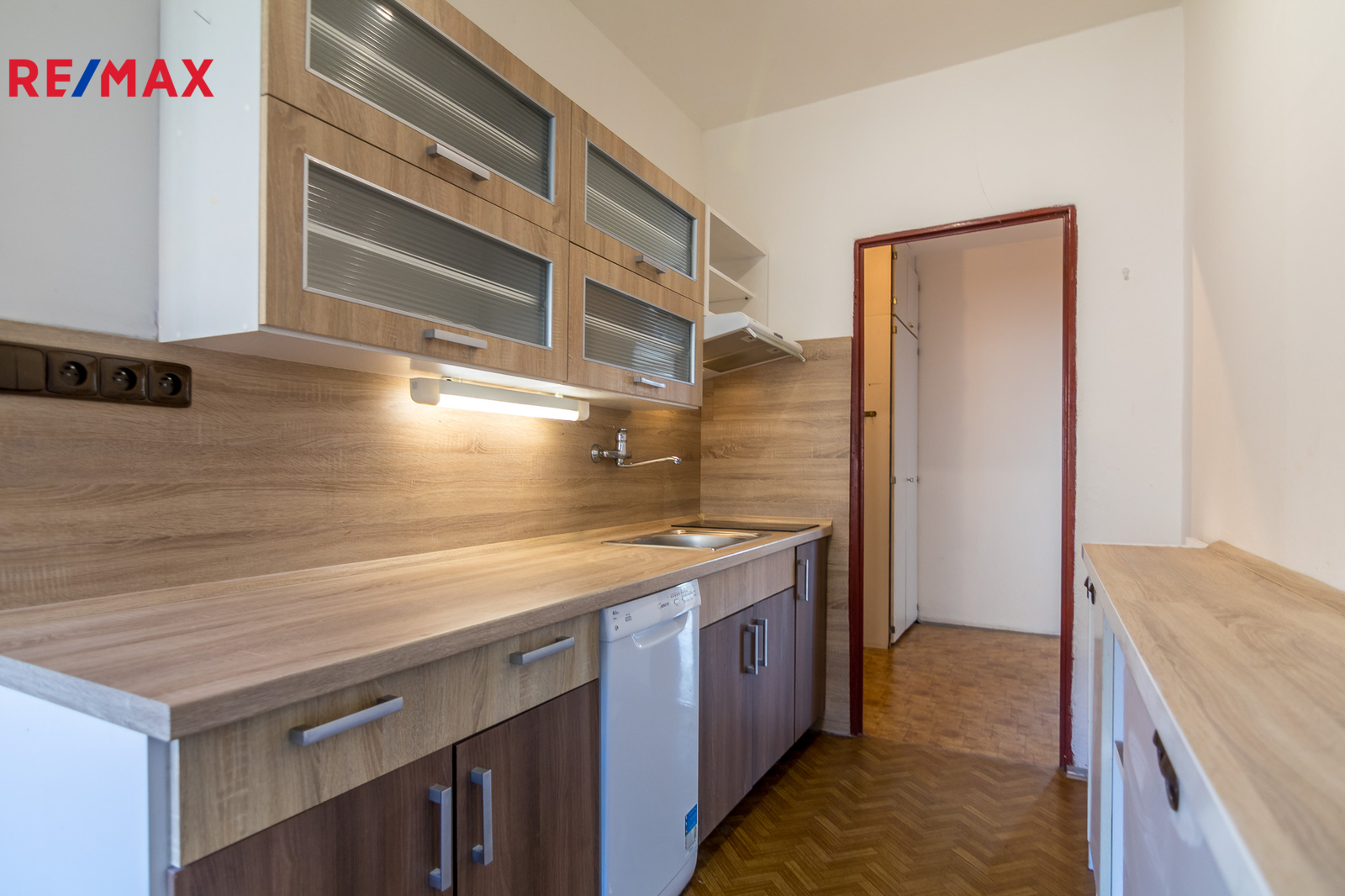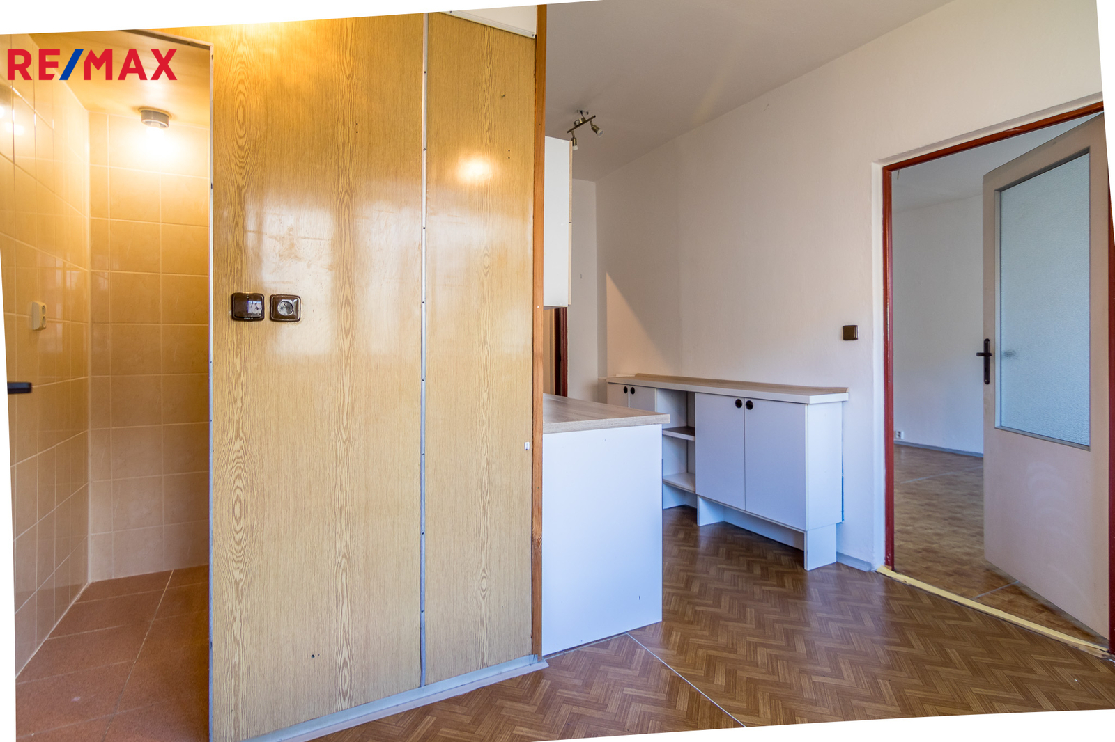 Samotný byt je vyklizený, světlý a v původním, avšak zachovalém stavu, takže nový majitel má možnost přizpůsobit si jej plně podle svých představ. Dispozice je praktická – z předsíně se vstupuje do všech místností: dvou pokojů, z nichž jeden disponuje balkónem, a druhý je průchozí do kuchyně, kterou lze využít i samostatně, protože má další vstup přímo z chodby. Kuchyně je vybavena novější kuchyňskou linkou, za jejíž rohem se nachází vstup do koupelny se sprchovým koutem a umyvadlem. Toaleta je samostatná, a nechybí ani praktická komora na uložení věcí.