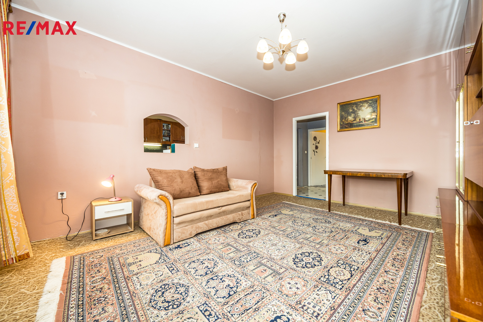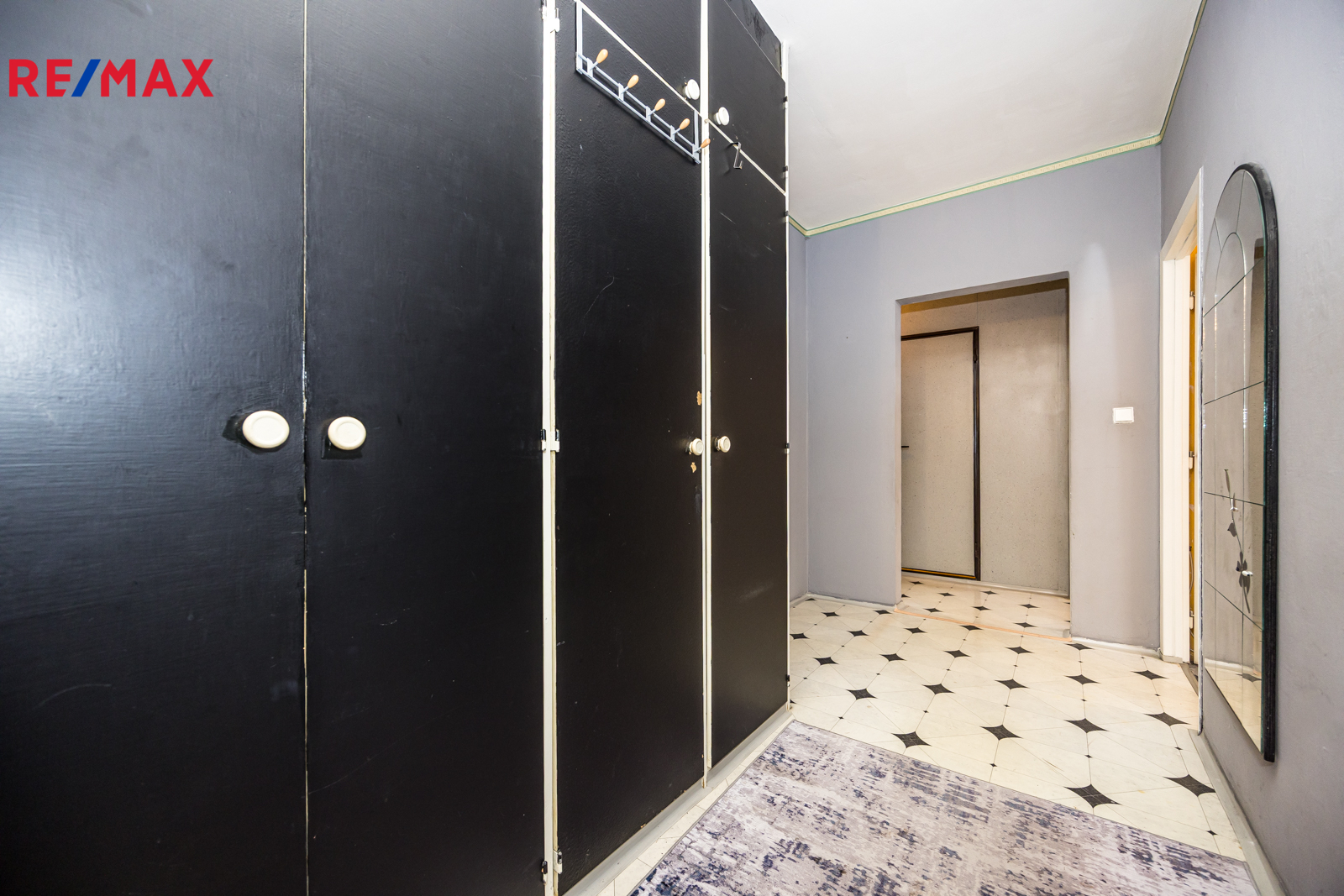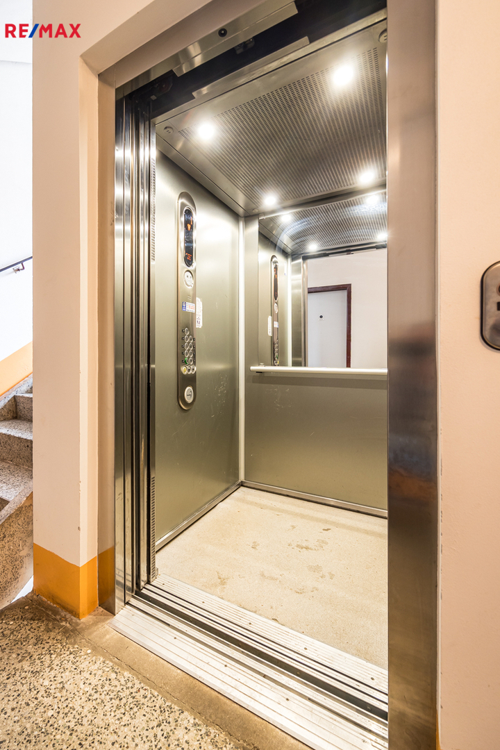 Stav bytu: V průběhu let byla vyměněna kuchyňská linka. Jinak je byt v původním stavu s původním umakartovým jádrem. Toaleta je samostatná. Okna jsou plastová s izolačními dvojskly, elektřina v mědi. Vytápění je ústřední dálkové. V kuchyni, koupelně a předsíni je na betonových podlahách položena krytina z PVC, v obývacím pokoji a ložnicích jsou koberce. V domě je prostorný výtah. K bytu náleží užívání sklepa.