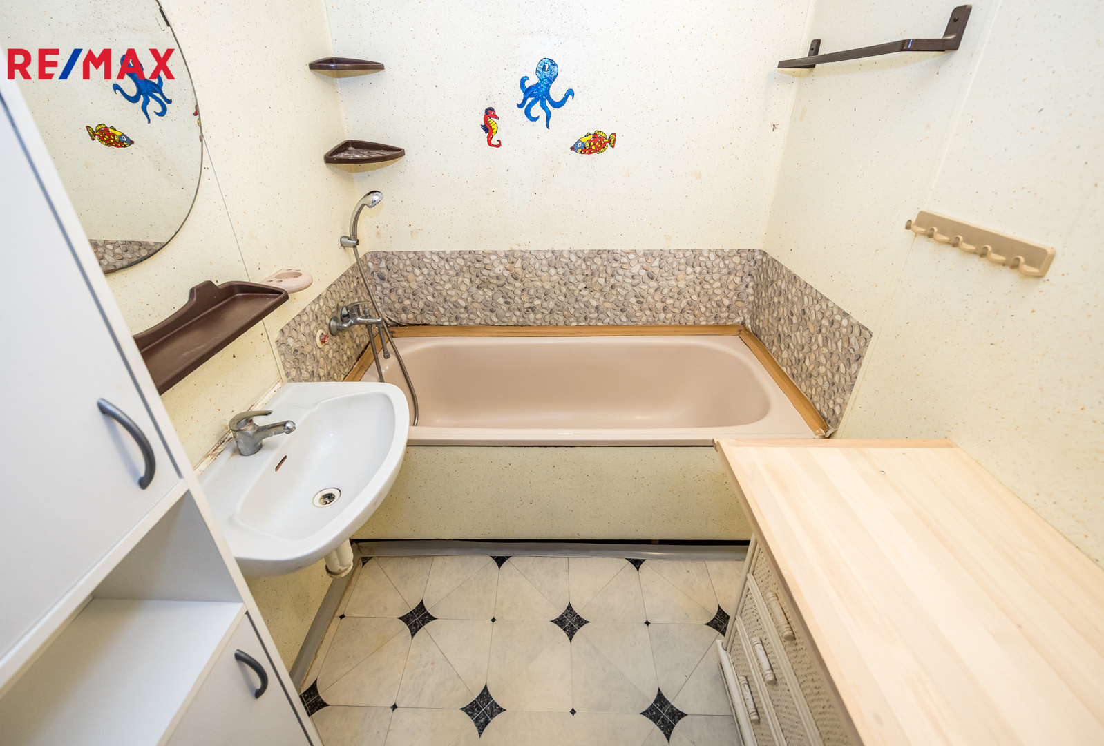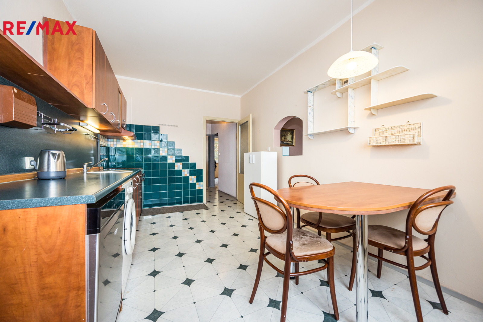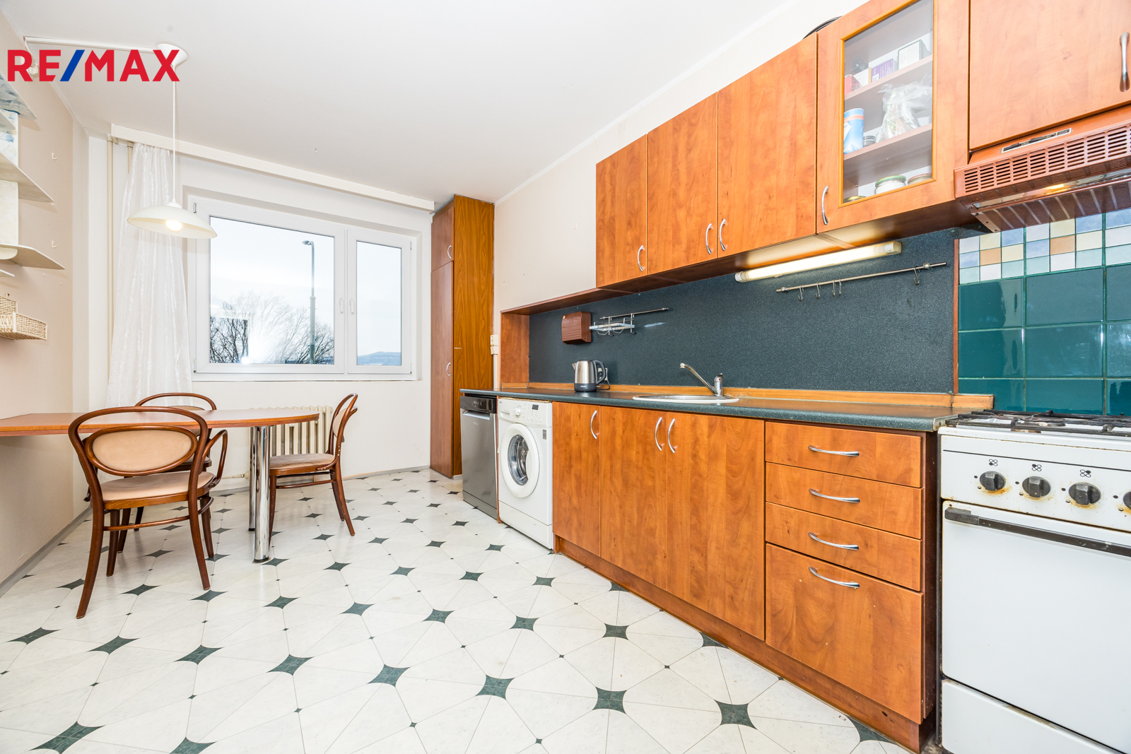 Stav bytu: V průběhu let byla vyměněna kuchyňská linka. Jinak je byt v původním stavu s původním umakartovým jádrem. Toaleta je samostatná. Okna jsou plastová s izolačními dvojskly, elektřina v mědi. Vytápění je ústřední dálkové. V kuchyni, koupelně a předsíni je na betonových podlahách položena krytina z PVC, v obývacím pokoji a ložnicích jsou koberce. V domě je prostorný výtah. K bytu náleží užívání sklepa.