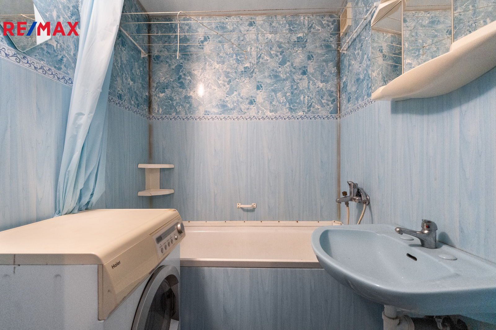 Byt je před rekonstrukcí – původní kuchyňská linka i původní koupelnové jádro.