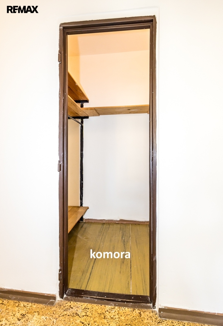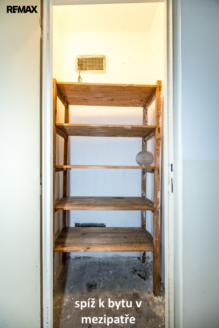 Byt je vyklizený a čerstvě vymalovaný, ve stavu k užívání či rekonstrukci. Dva ze čtyř pokojů mají menší výměru, v bytě je komora (šatna) a jeho součástí je i spíž v mezipatře. V mezipatře je též k užívání menší lodžie, která je součástí společných prostor domu. Sklepy v domě nejsou.