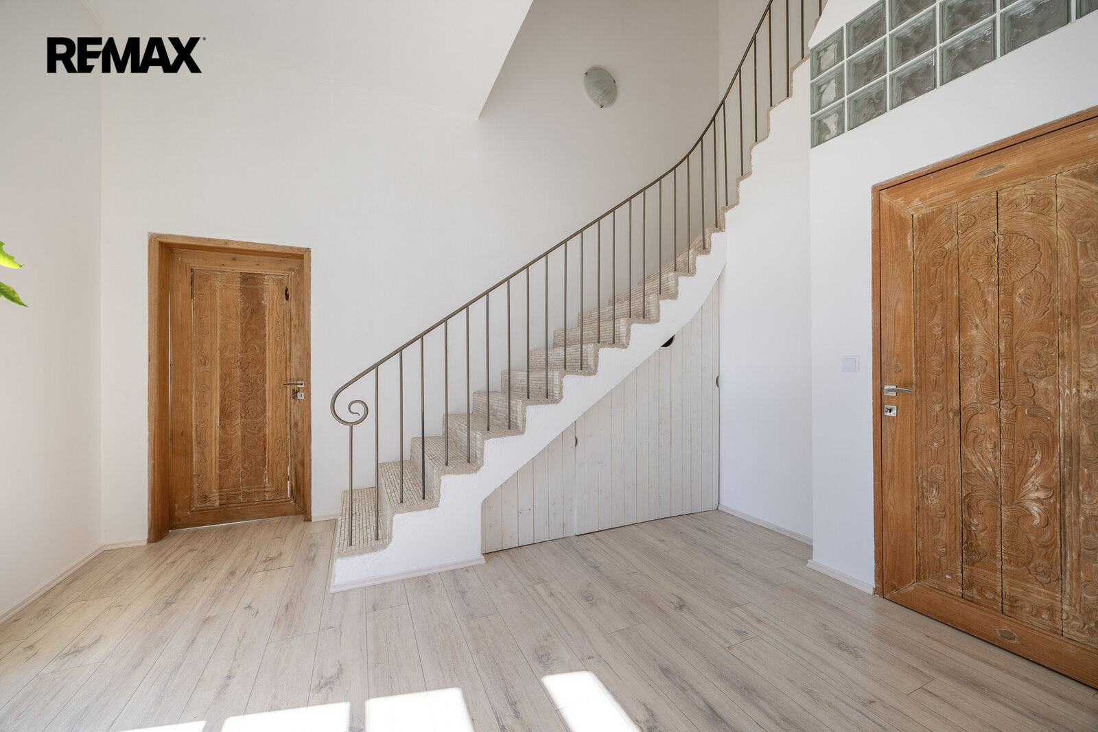 Pod vstupem do domu se nachází úložné prostory.
