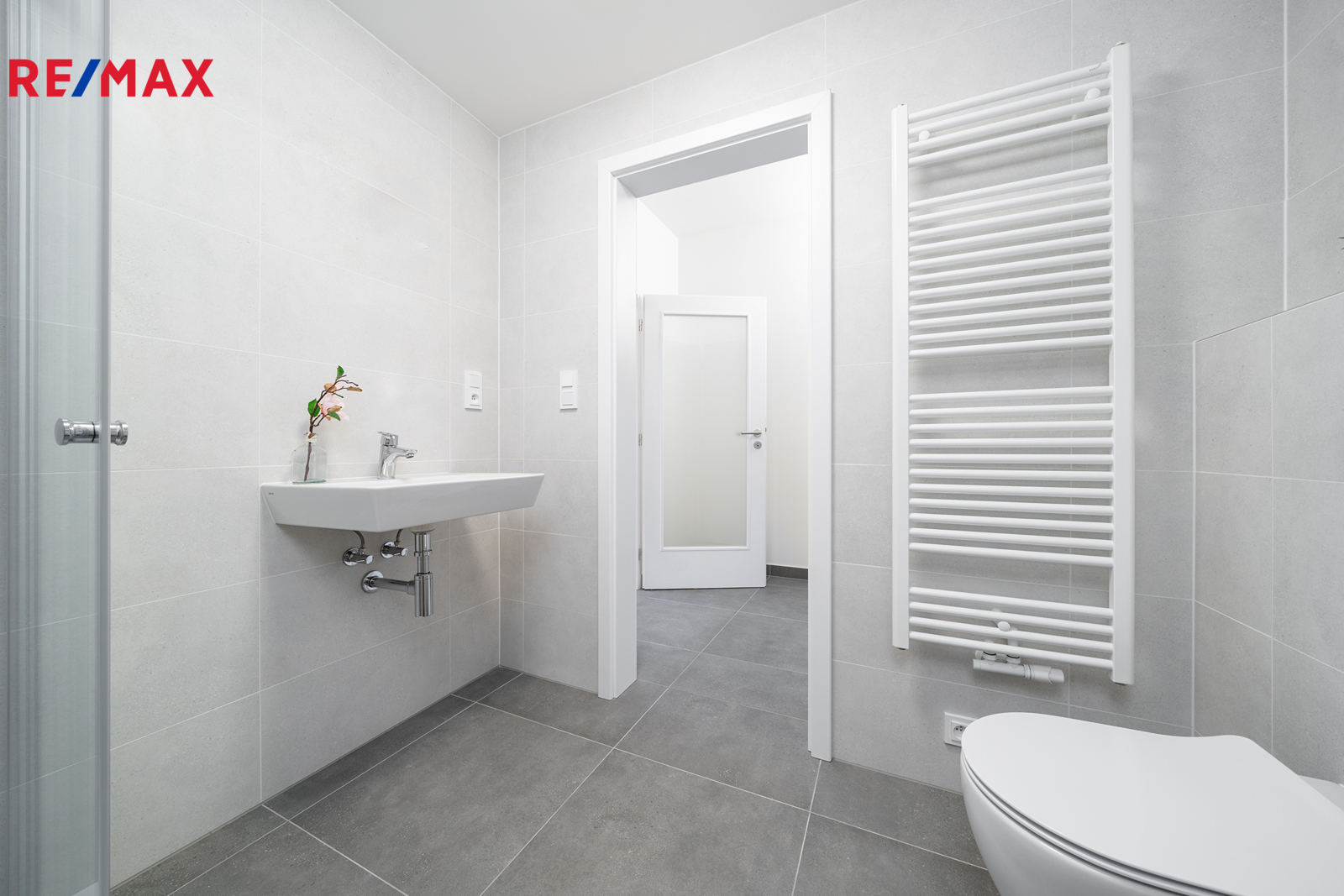 Byt je vybavený kuchyňskou linkou se sklokeramickou varnou deskou, digestoří, elektrickou troubou a myčkou. Francouzské okno s bezpečnostním sklem, venkovní žaluzie. Koupelna s WC a sprchovým koutem, koupelnový radiátor.