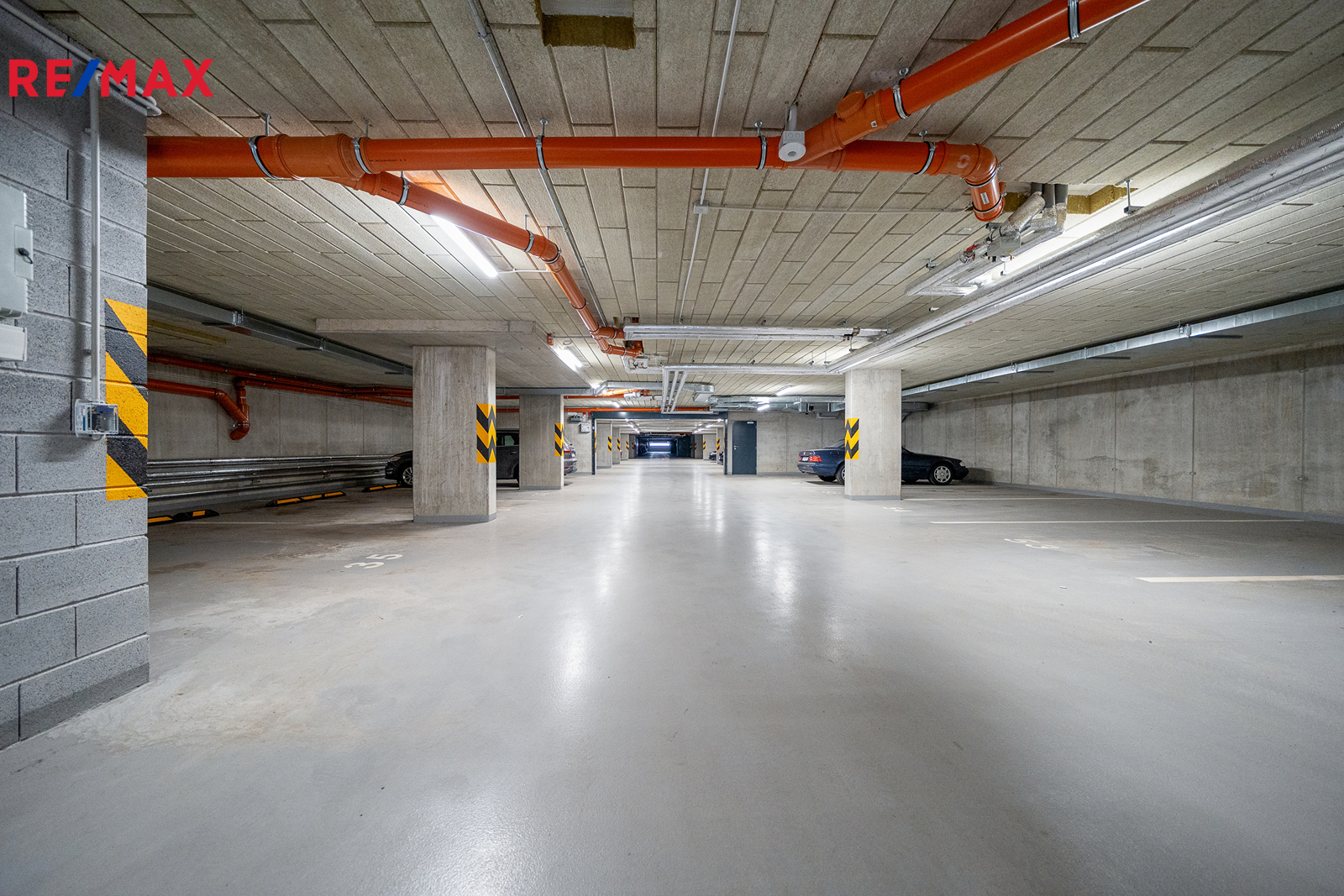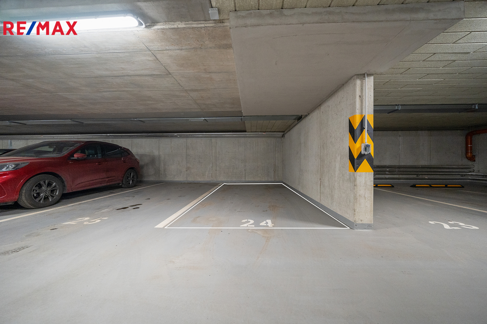 K bytu přináleží sklepní kóje a garážové parkovací stání. V domě je k dispozici kočárkárna/kolárna.