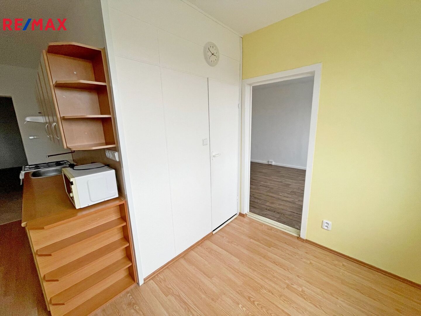 Dispozice bytu: pokoj 20 m², kuchyň 12 m², koupelna, samostatné WC, chodba, sklep. Bytová jednotka je kompletně po rekonstrukci, kuchyňská linka, nové podlahy v celém bytě, koupelna, WC, v chodbě jsou úložné prostory. Byt se pronajímá částečně vybavený, lednice, pračka, mikrovlnná trouba. Dům je po revitalizaci, zateplení, fasáda, střecha, výtah, stoupačky, plastová okna. Připojení TV a internet jsou v ceně nájmu. Byt je volný od 1.12.2025.