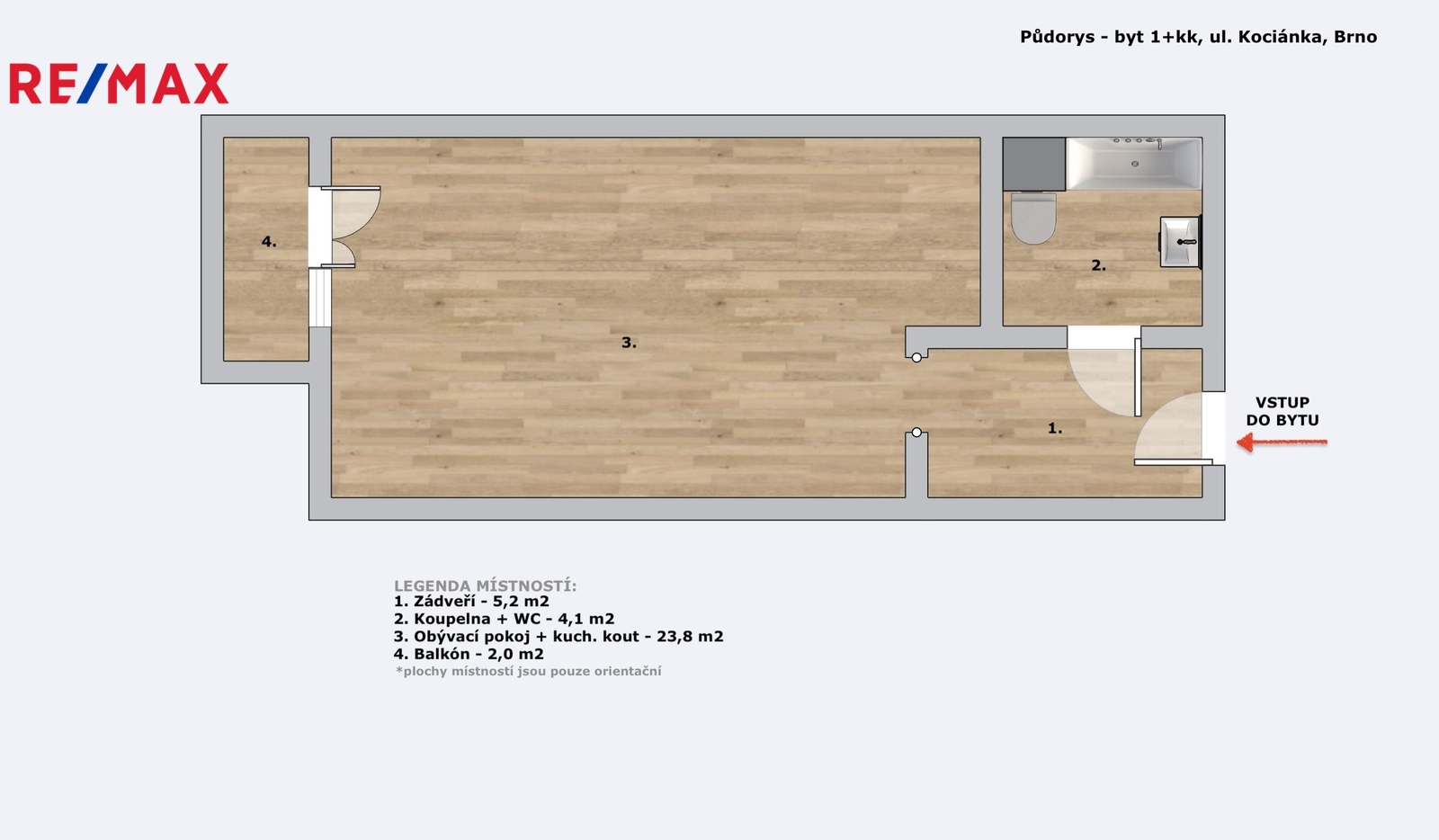 Nabízíme moderní 1+kk s nádherným výhledem na Brno – kousek od Semilasa a se snadnou a rychlou dostupností do Soběšic, kde si užijete procházky, sport i klid přírody.