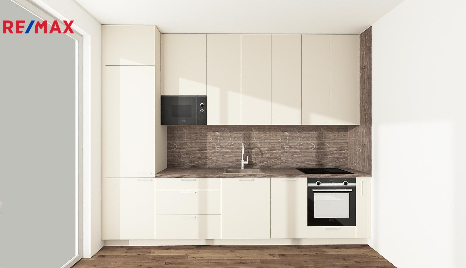 Byt se nachází ve finální fázi dokončení – aktuálně probíhá montáž nové kuchyňské linky od renomovaného studia Kuchyně Hanák, která bude součástí vybavení.
