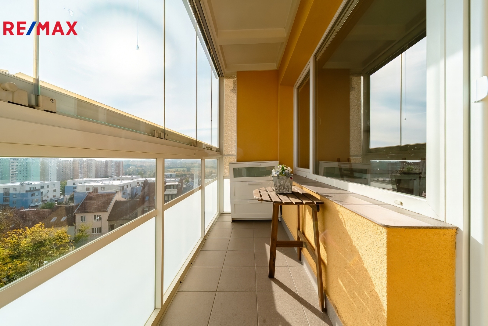 Hlavní obytný prostor s kuchyňským koutem má výměru 20,30 m² a nabízí vstup na zasklenou lodžii o ploše 4,7 m², která rozšiřuje užitný komfort bytu. Byt dále disponuje koupelnou se sprchovým koutem a WC. V předsíň se nachází místo na pračku a praktická komora.