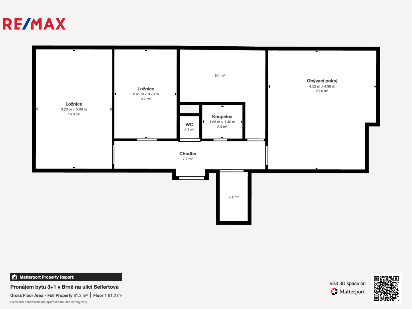 Nabízíme k pronájmu byt o dispozici 3+1 s celkovou užitnou plochou 74 m², situovaný v klidné a žádané lokalitě Brno – Lesná, na adrese Seifertova. Byt se nachází ve 4. nadzemním podlaží cihlového čtyřpatrového domu bez výtahu. Nemovitost prošla kompletní rekonstrukcí – koupelna, WC, kuchyňská linka, rozvody, omítky a podlahové krytiny, což zajišťuje moderní a pohodlné bydlení. Kuchyňská linka a osvětlení budou dokončeny tak, aby byl byt při předání plně funkční. Byt nabízí prostorný obývací pokoj se vstupem na balkon o velikosti 5 m², dvě ložnice, kuchyni s novou linkou, koupelnu, samostatné WC, chodbu s úložnými možnostmi a komoru. K bytu náleží také sklep o ploše 2 m².
