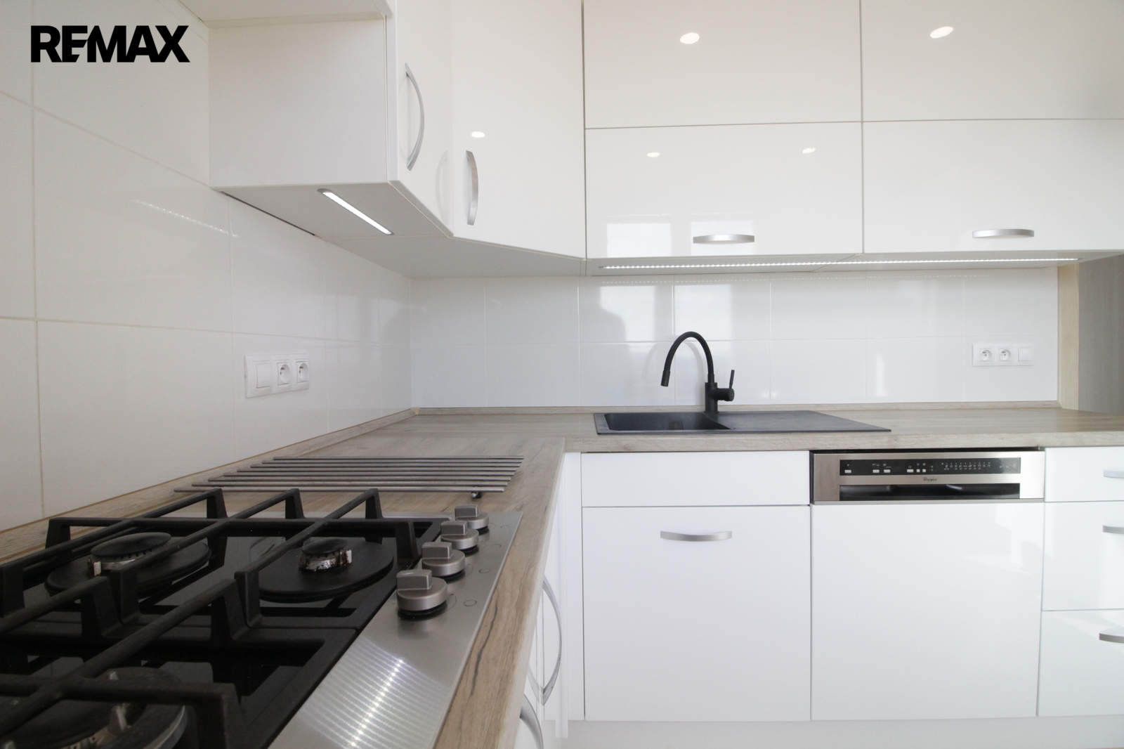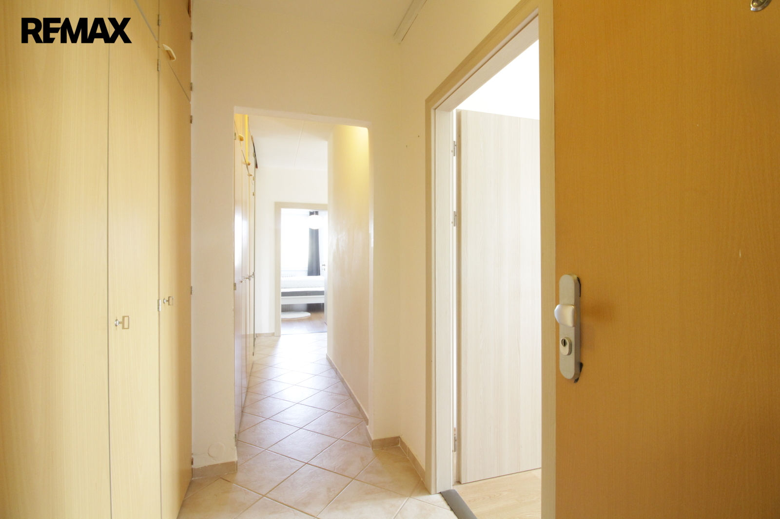 Interiér bytu je řešen velmi prakticky a nabízí vysokou míru soukromí, protože jsou všechny tři pokoje neprůchozí a samostatně dostupné z centrální chodby ve tavru L. Dominantou je moderní kuchyně vybavená kvalitními spotřebiči včetně myčky nádobí a lednice s mrazákem.