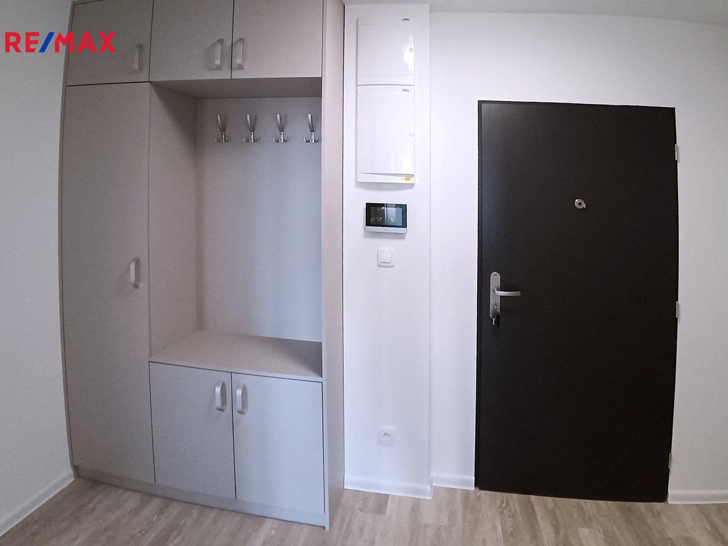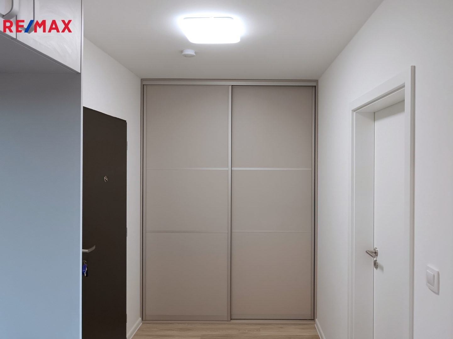 Bytová jednotka je částečně vybavená: nová kuchyňská linka včetně vestavných spotřebičů (digestoř, indukční deska, horkovzdušná trouba, myčka) + kombinovaná lednice s mrazákem a mikrovlnná trouba, dále vestavná šatní skříň a předsíňová stěna v chodbě bytu. V koupelně je k dispozici pračka. V celém bytě jsou osazena kvalitní LED svítidla. Na všech oknech jsou instalovány venkovní předokenní žaluzie na dálkové ovládání.
