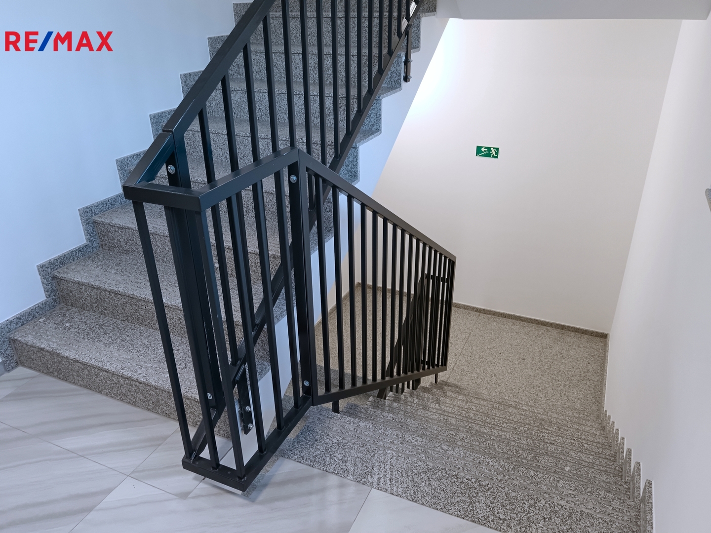 Byt se nachází ve 4.NP (3. patro) s výtahem, má dispozici 2+kk o výměře 49,4 m2 + terasa 5,8 m2 + sklep na patře cca 2 m2.