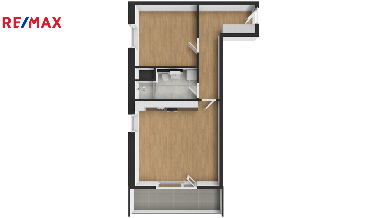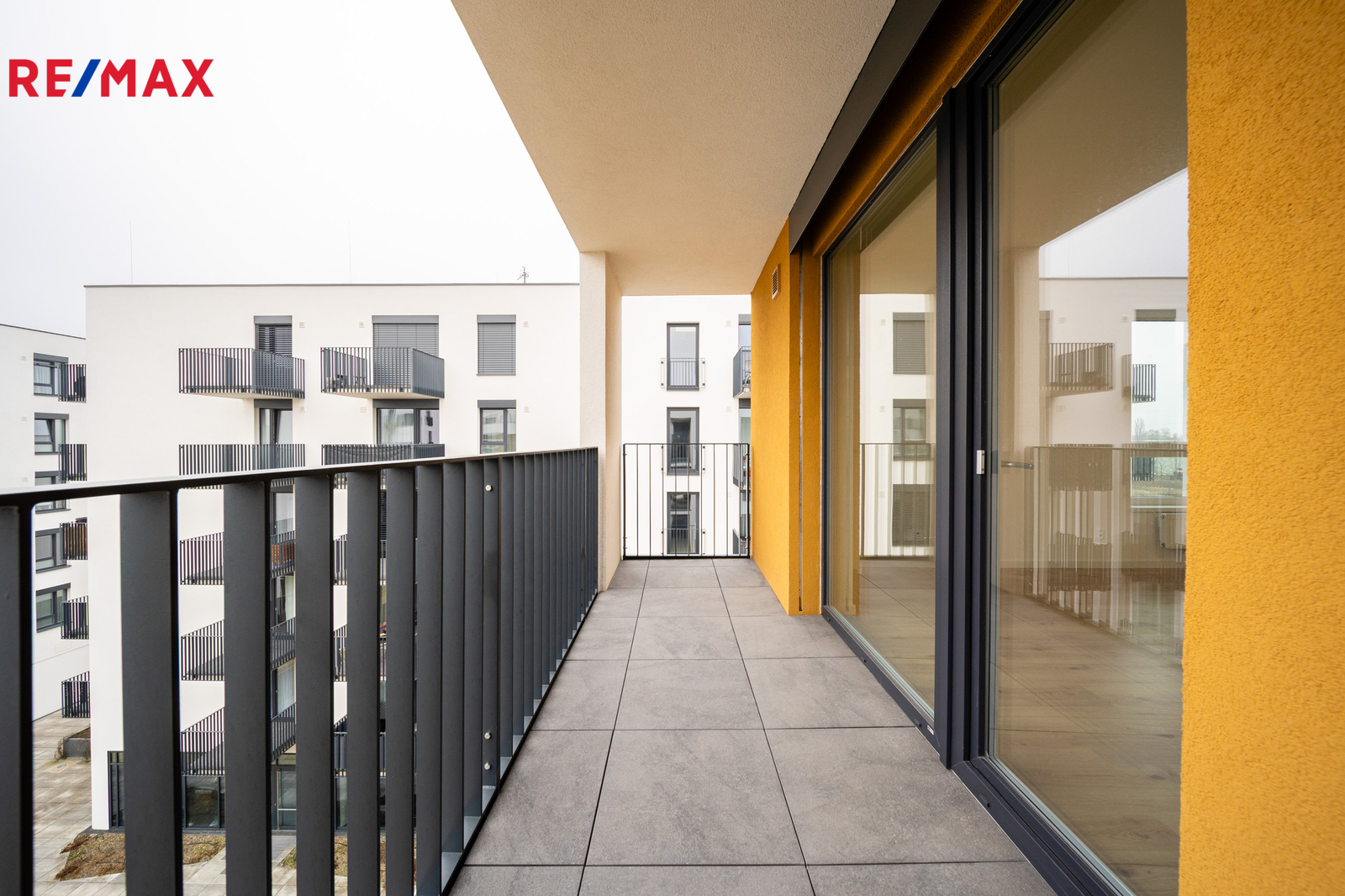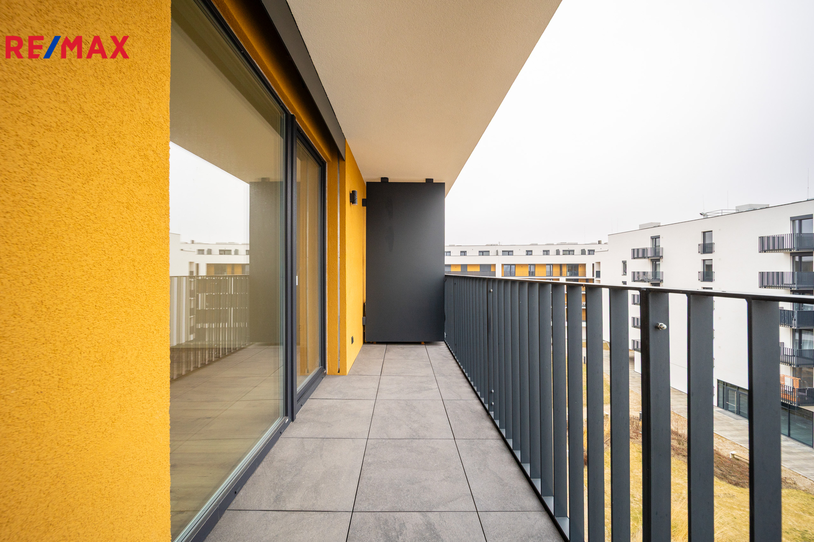 ▪ Lodžie orientovaná na jih s výhledem do zahrady vnitrobloku poskytuje velkorysý prostor na umístění posezení.