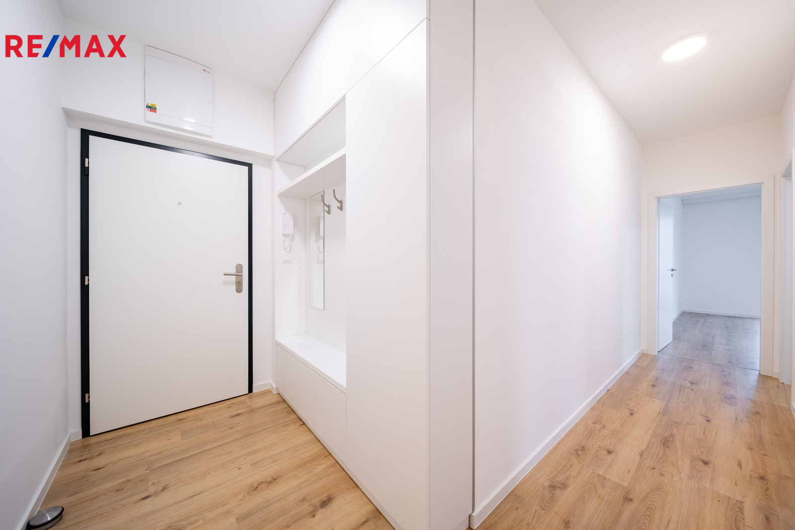 ▪ V chodbě je hned u vstupu instalována praktická předsíňová stěna se skříní a botníkem.