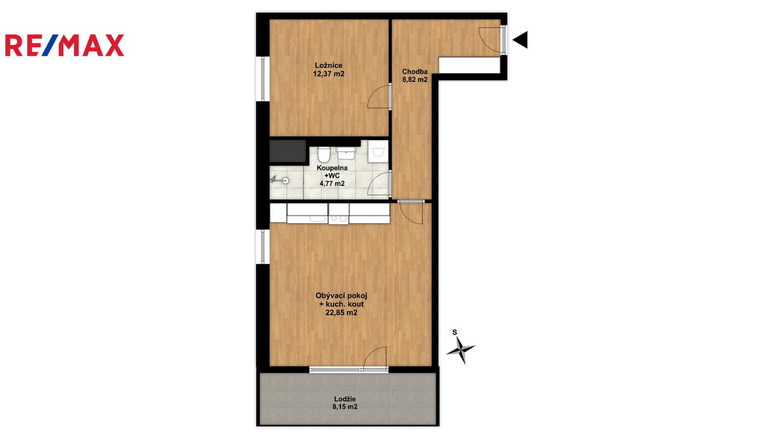 ▪ Obývací pokoj s kuchyňským koutem a vstupem na lodžii je dominantou bytu a nabízí dostatek prostoru a světla.
