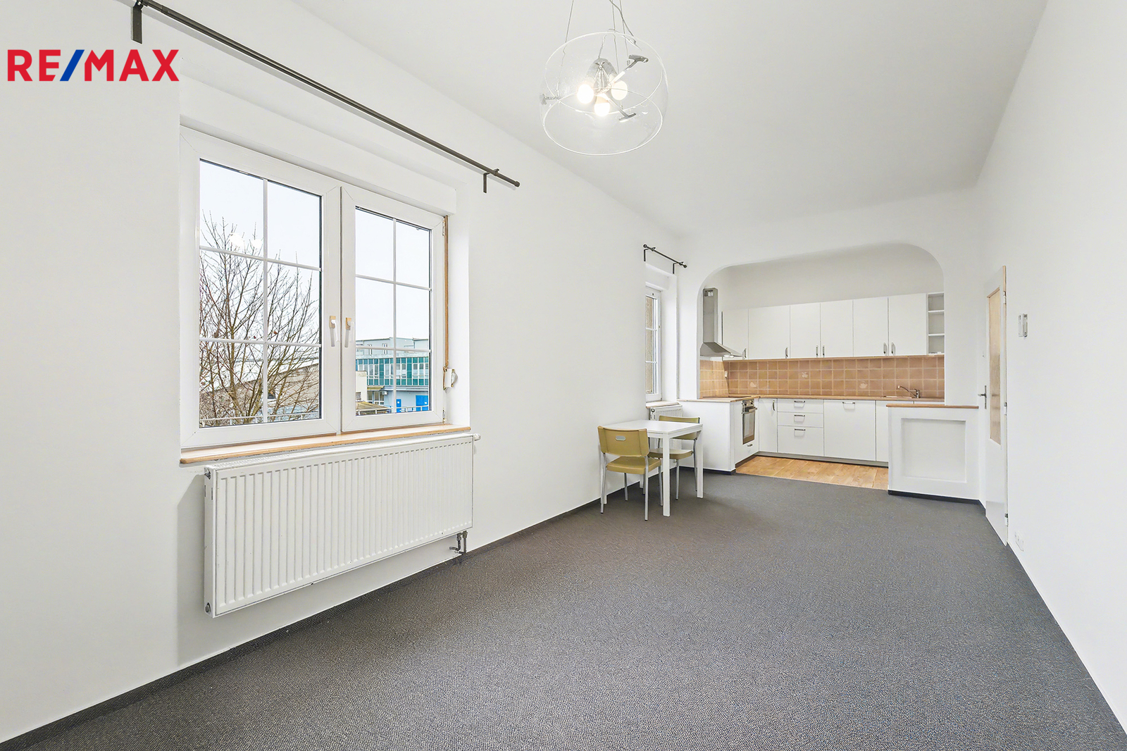 Byt o dispozici 2 + kk a podlahové ploše 44 m2 je umístěn ve 2. nadzemním podlaží cihlového domu bez výtahu.
