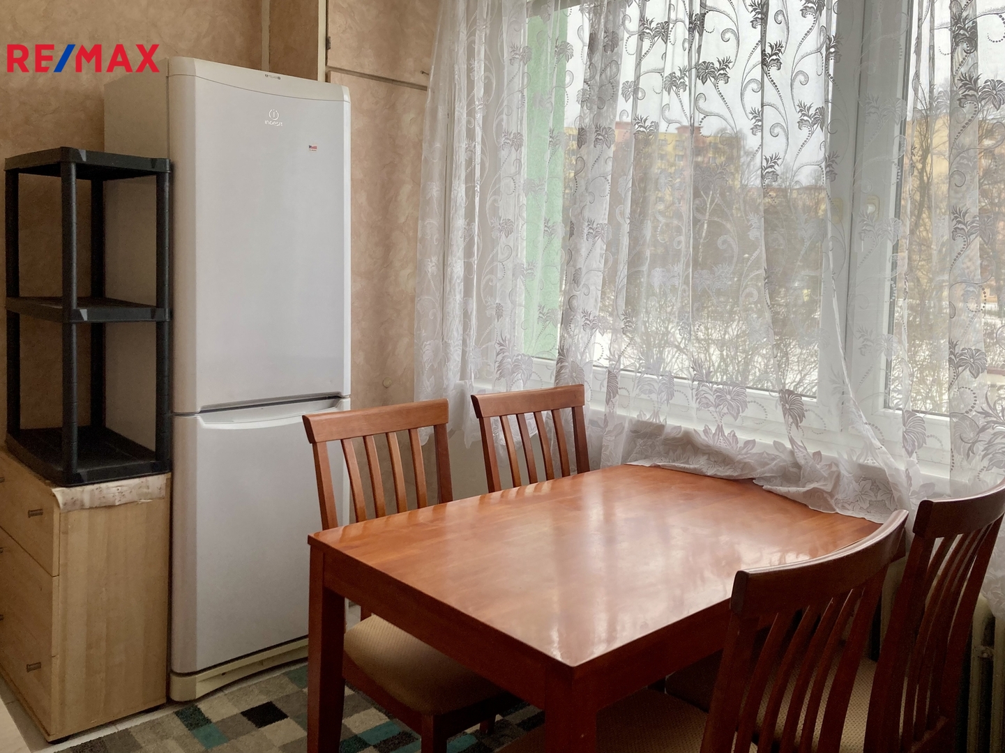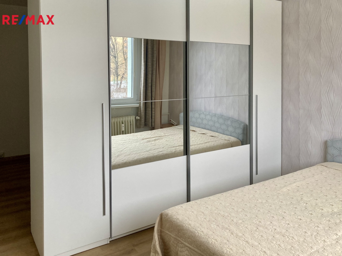 Původní dispozice 2+1 je pomocí nábytku přeměněn na 3+1. V chodbě je zděná šatna a skříň jako hlavní úložný prostor, botník a věšáková stěna. V jednom z pokojů je širší lůžko a šatní skříň. V druhém z pokojů je pak sedačka, konferenční a televizní stolek, televize. Kuchyňská linka je vybavená myčkou a pračkou, v kuchyni je také chladnička, jídelní stůl se židlemi. Zánovní kuchyňská linka poskytuje dostatek úložného prostoru. Částečnou rekonstrukcí prošla koupelna a podlahové krytiny.