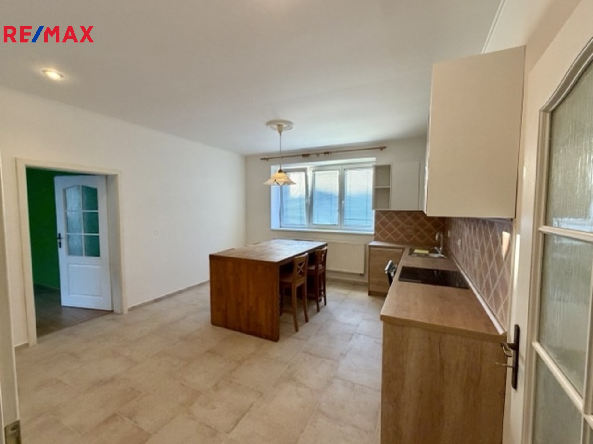 Dominantou bytu je prostorná kuchyně s masivním jídelním stolem a novou kuchyňskou linkou vybavenou moderními spotřebiči. Dále je k dispozici útulný obývací pokoj s krbem a samostatná ložnice.