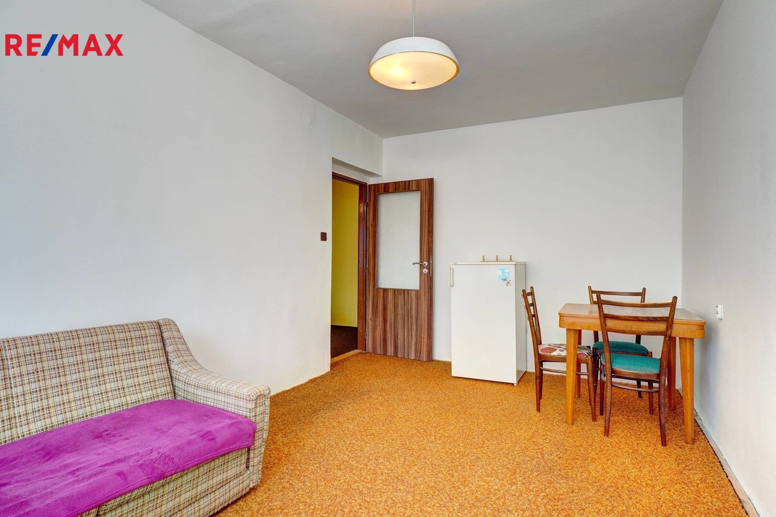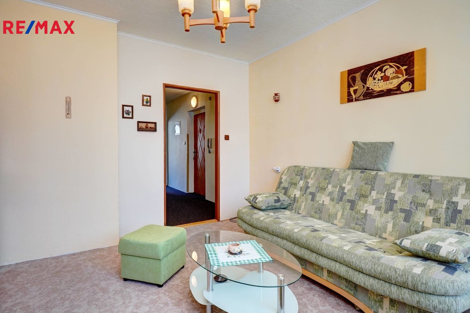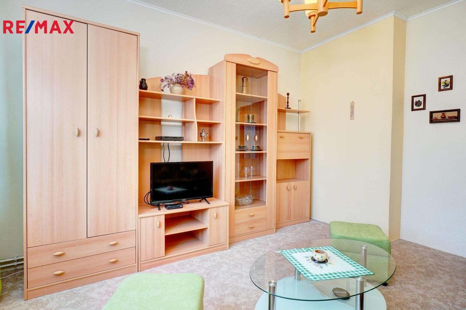 Kuchyně je vybavena kuchyňskou linkou s plynovým sporákem a jídelním stolem. Obývací pokoj je kompletně zařízen – k dispozici je gauč, obývací stěna i konferenční stolek. Ložnice je nezařízená, což umožňuje novému nájemníkovi upravit si prostor dle vlastních představ. K bytu náleží také sklepní kóje o velikosti 0,7 m².