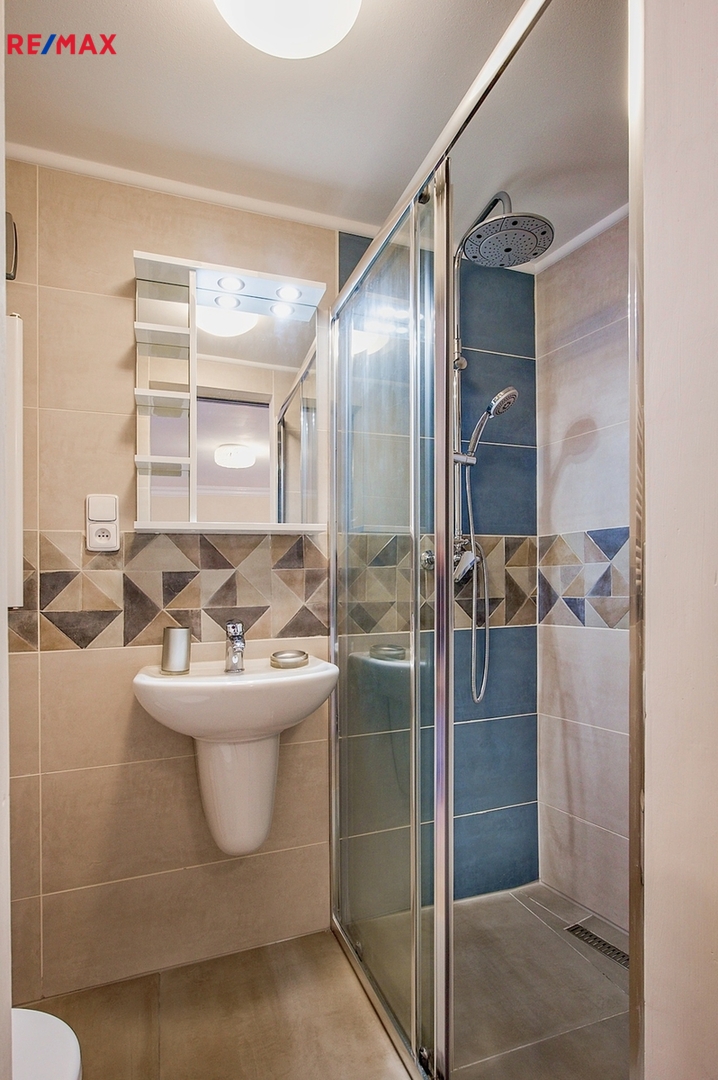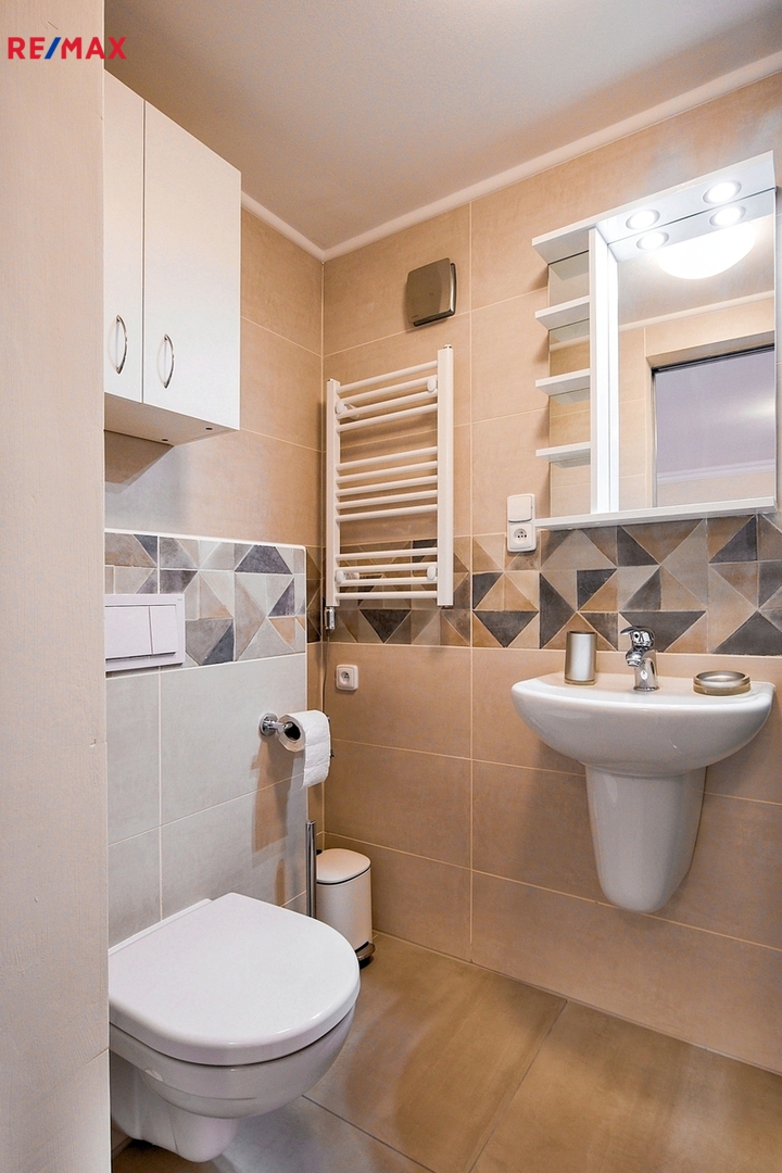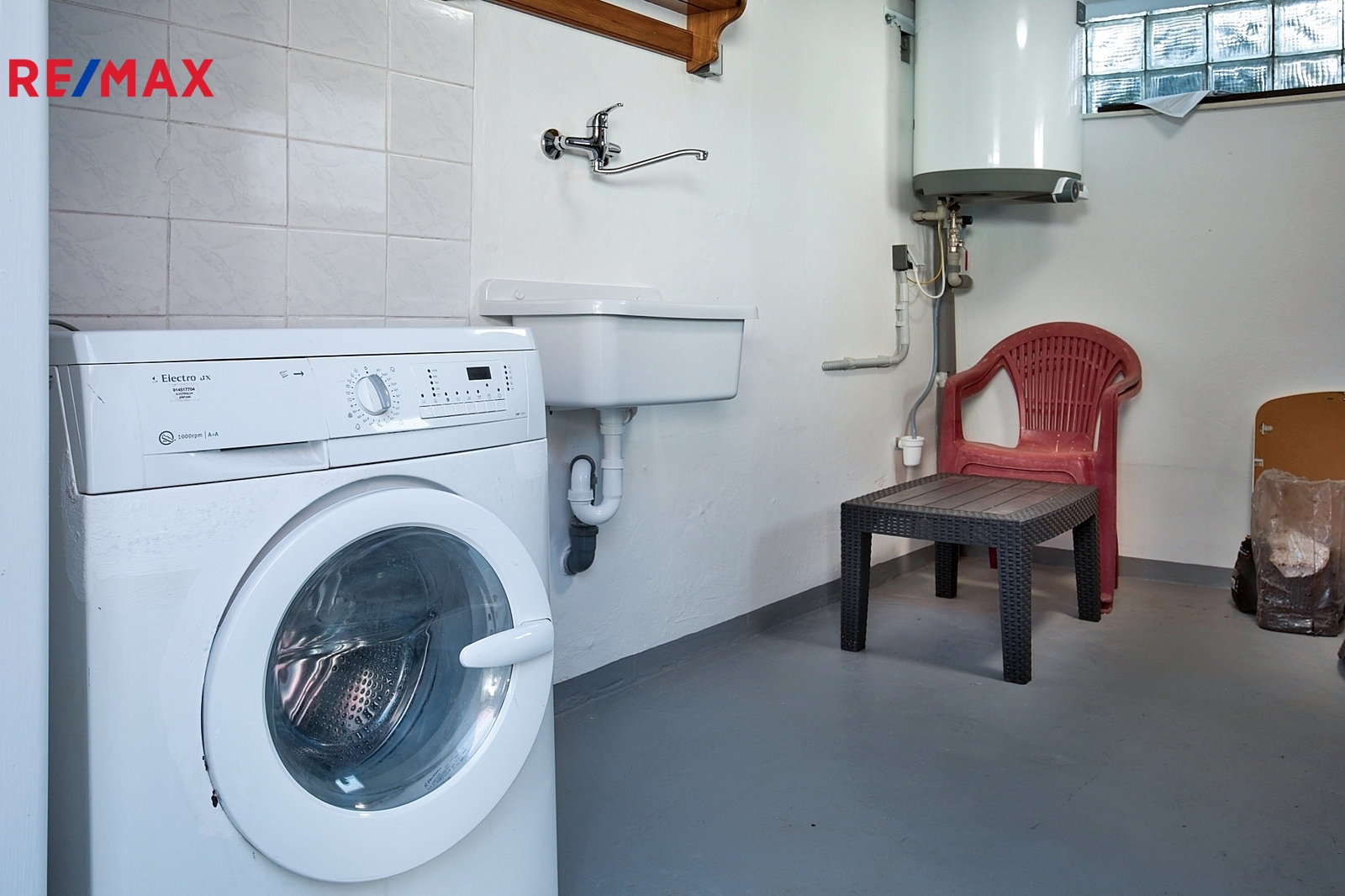 S bytem sousedí technická a skladová místnost, o velikosti 14 m2, s odděleným vstupem, kde je umístěná pračka a bojler a kde lze umístit např. kolo atd.