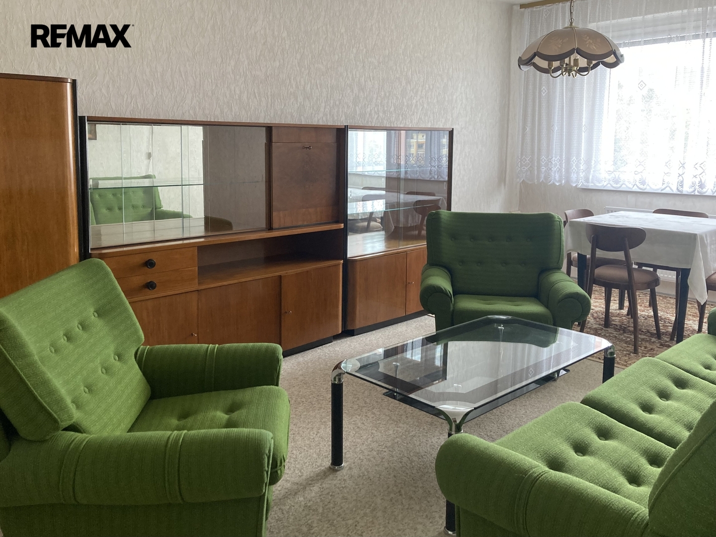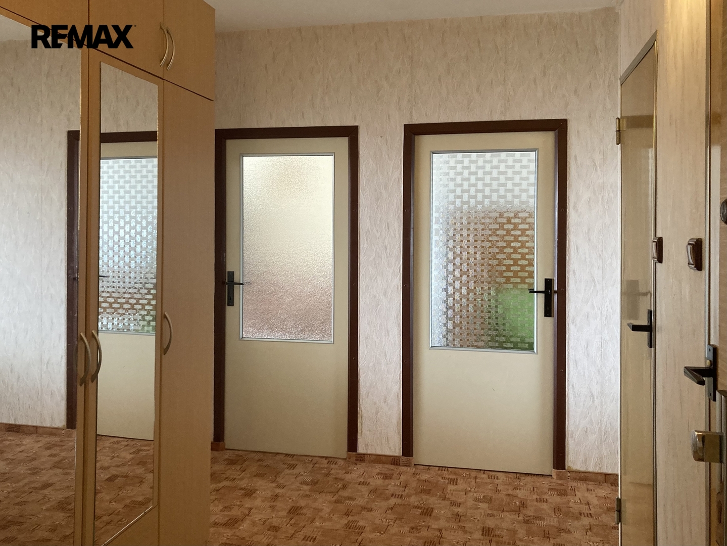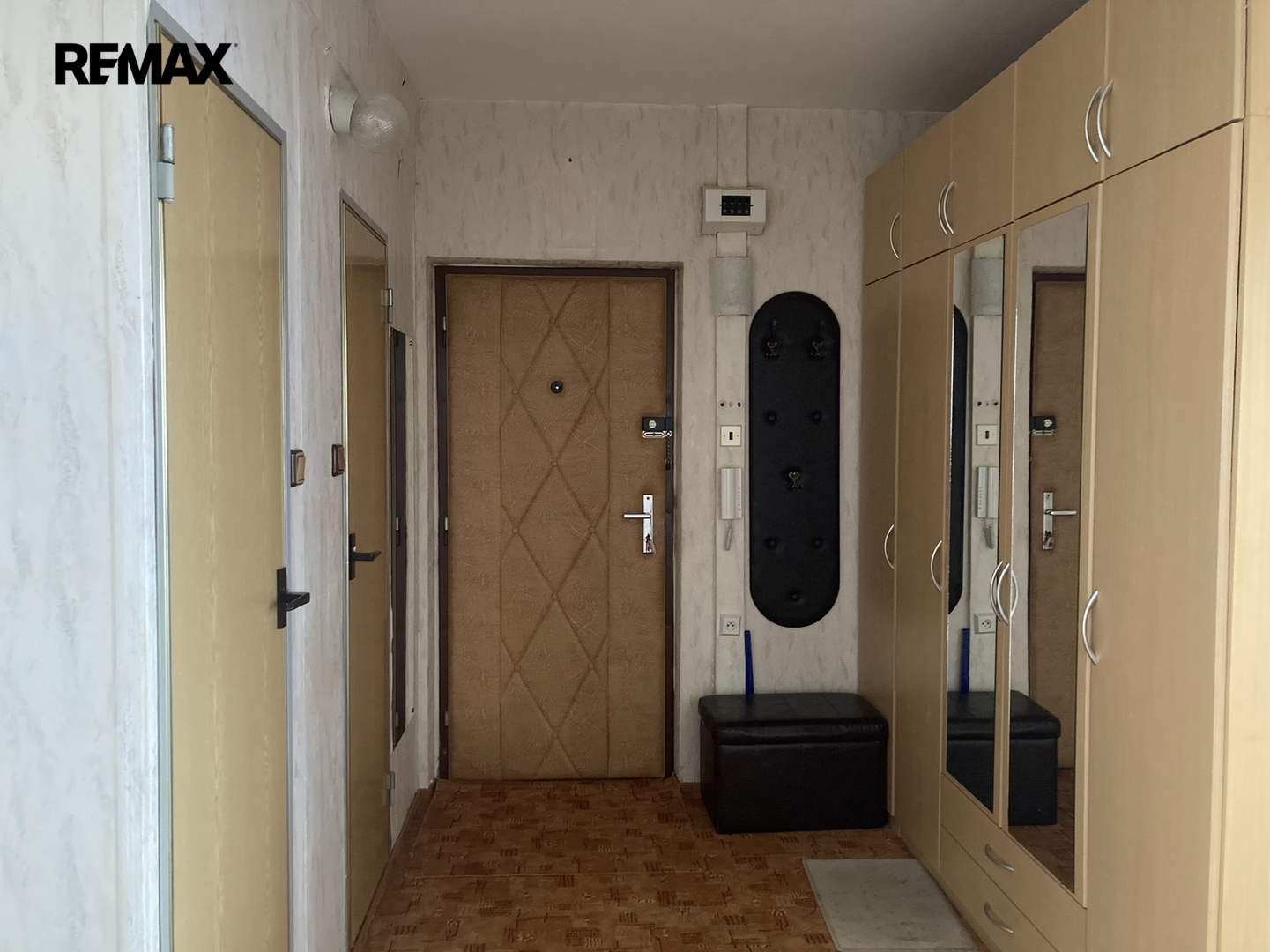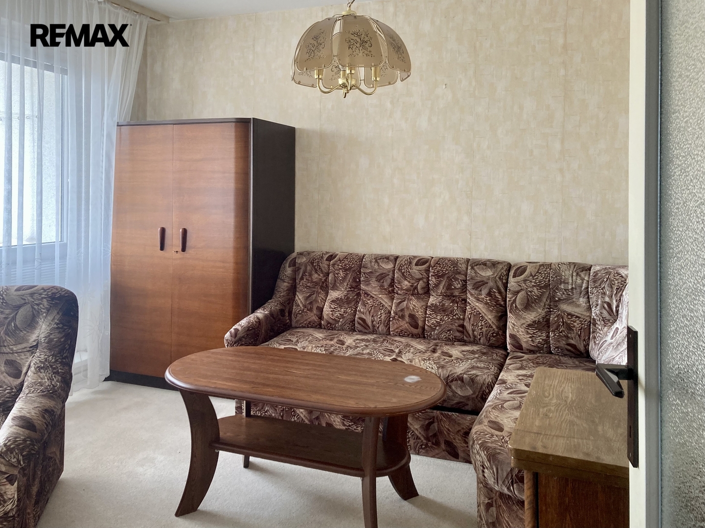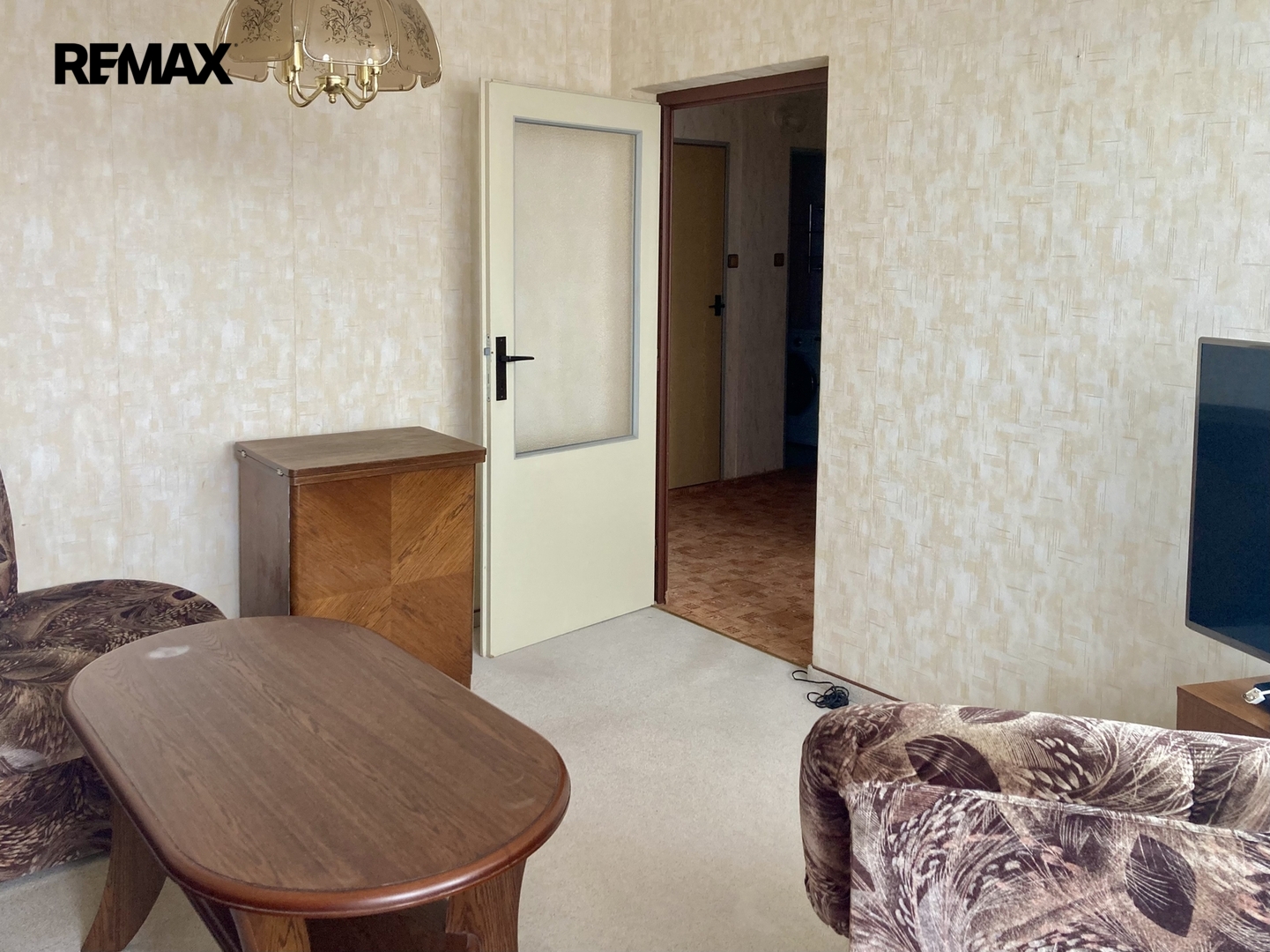 Vlastní byt je bez zásadní rekonstrukce, vyjma kuchyňské linky a keramického obkladu v koupelně. Na podlaze jsou koberce, které prošly čištěním. Celý interiér navzdory téměř původnímu stavu působí velmi čistě a aktuálně je ještě zařízen starším nábytkem. Po domluvě s nájemníkem bude z bytu odvezen nábytek, o který nebude mít zájem. K zařízení bytu patří kombinovaný sporák, odsavač par, lednice a pračka. Ve vstupní chodbě je zánovní šatní skříň.