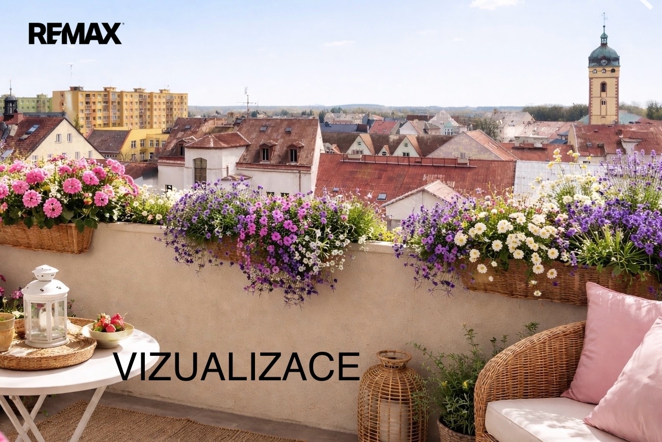 Byt má prostornou lodžii orientovanou na jihovýchod s výhledem na historickou část města. Opačná severozápadní strana poskytuje výhled na Krušné hory a Červený hrádek.