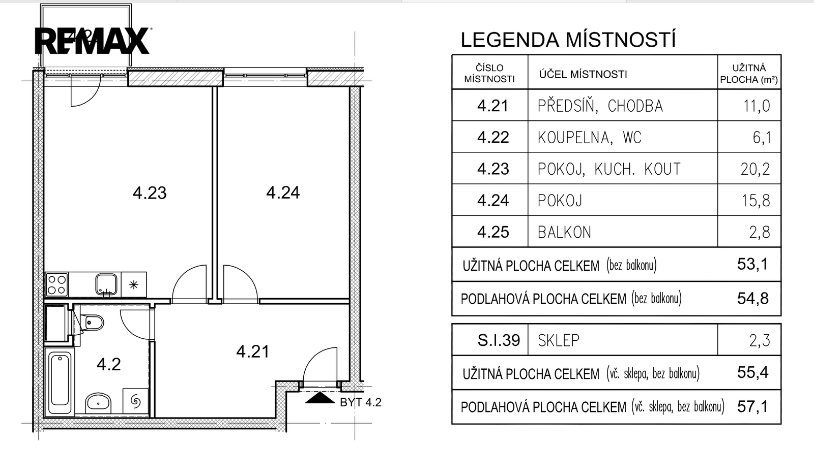 Byt má výměru 53 m2, je tvořen prostornou vstupní chodbou s vestavěnými skříněmi, obývacím pokojem s kuchyňskou linkou, ložnicí a koupelnou s vanou a toaletou. Z obývacího pokoje je vstup na balkon. Všechna okna bytu jsou orientována na východ. Byt se pronajímá částečně vybavený - skříně, pračka, lednice.