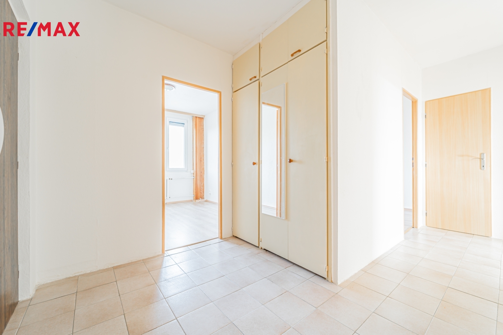 Dispozice bytu: vstupní chodba, ložnice, dětský pokoj, šatna, koupelna s vanou a WC, obývací pokoj propojený s kuchyní + samostatná komora na chodbě před bytem. K bytu patří také sklepní kóje v suterénu.