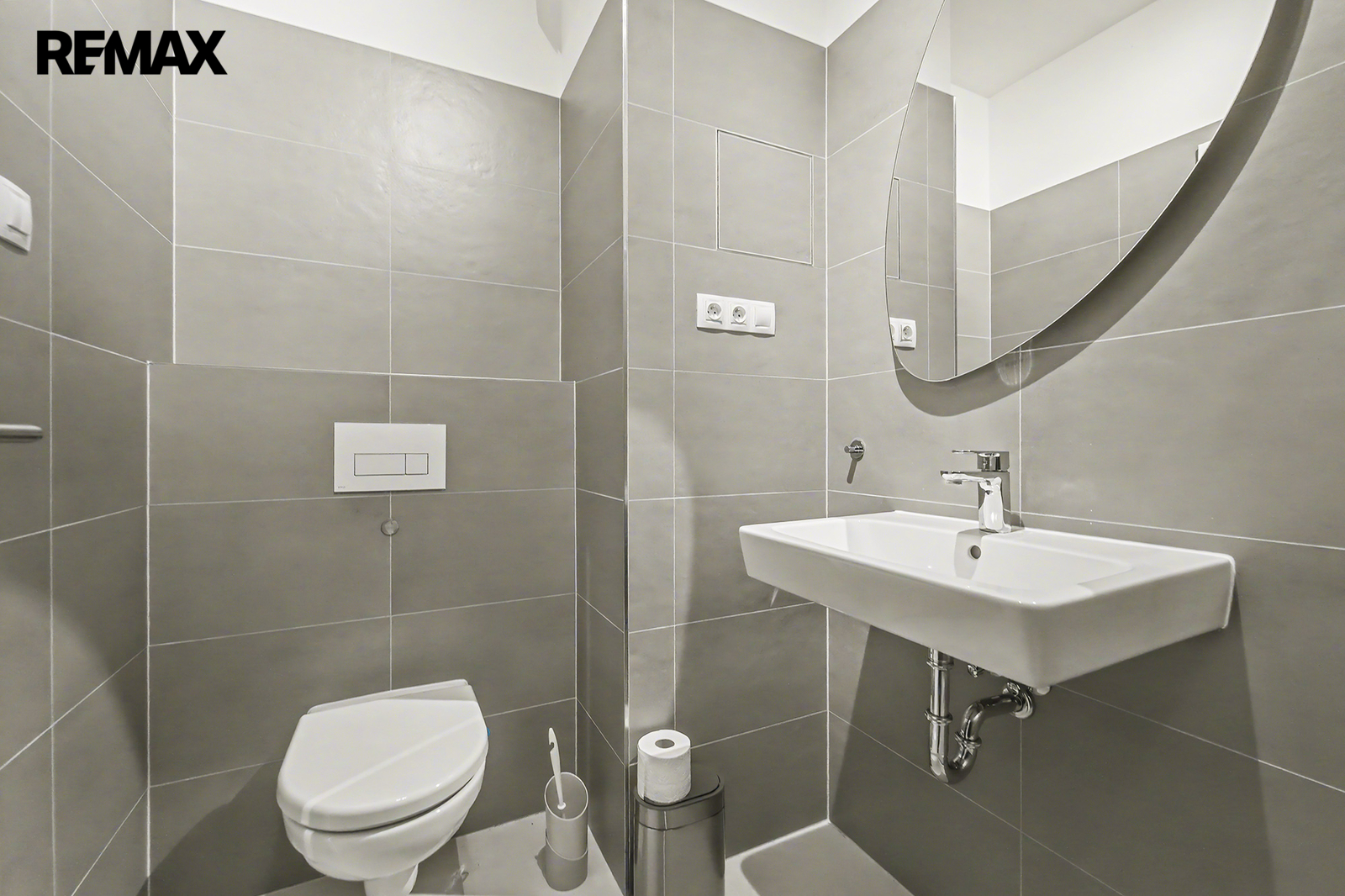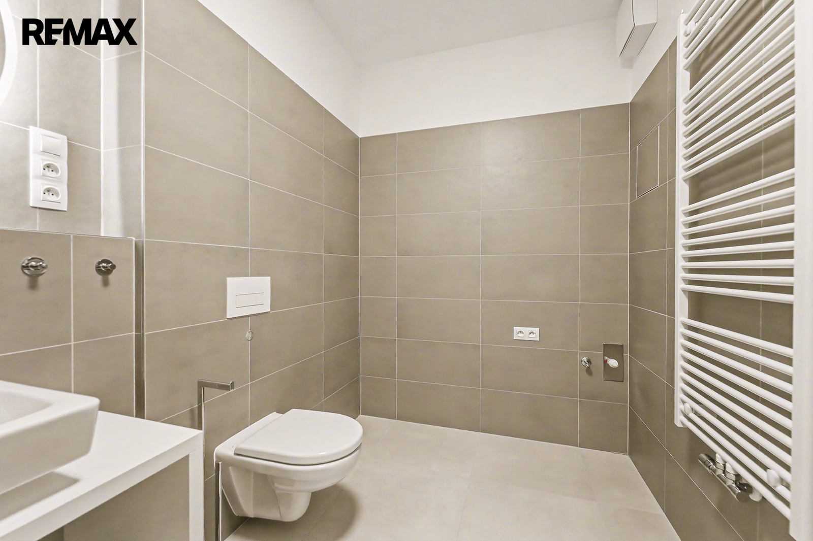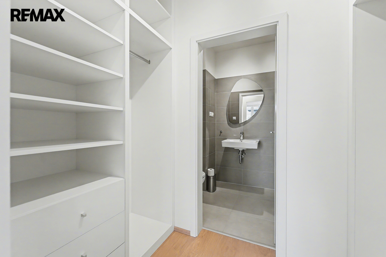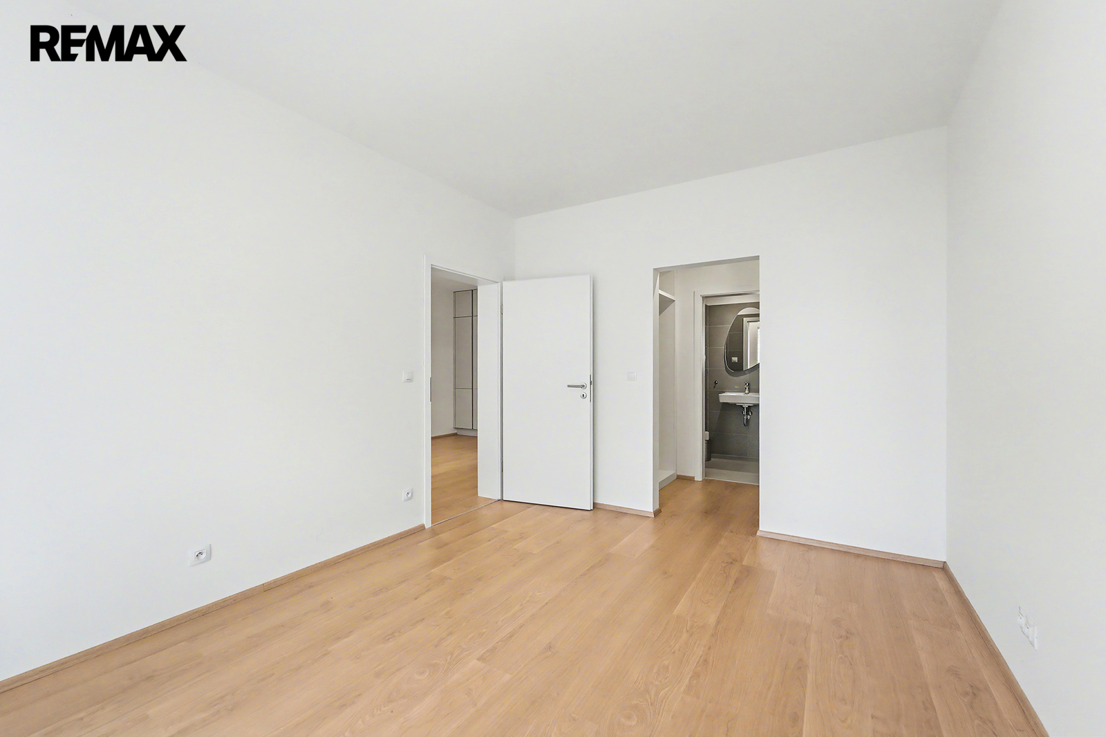 Byt byl zkolaudován v roce 2024 a hledáme první nájemníky. Byt se skládá z prostorné chodby o výměře 10,53 m², dvou koupelen (6,32 m² a 3,73 m²), obývacího pokoje s kuchyňským koutem o velikosti 26,25 m², šatny (3,52 m²), ložnice (12,97 m²), dalšího pokoje (14,96 m²) a pracovny (13,57 m²).