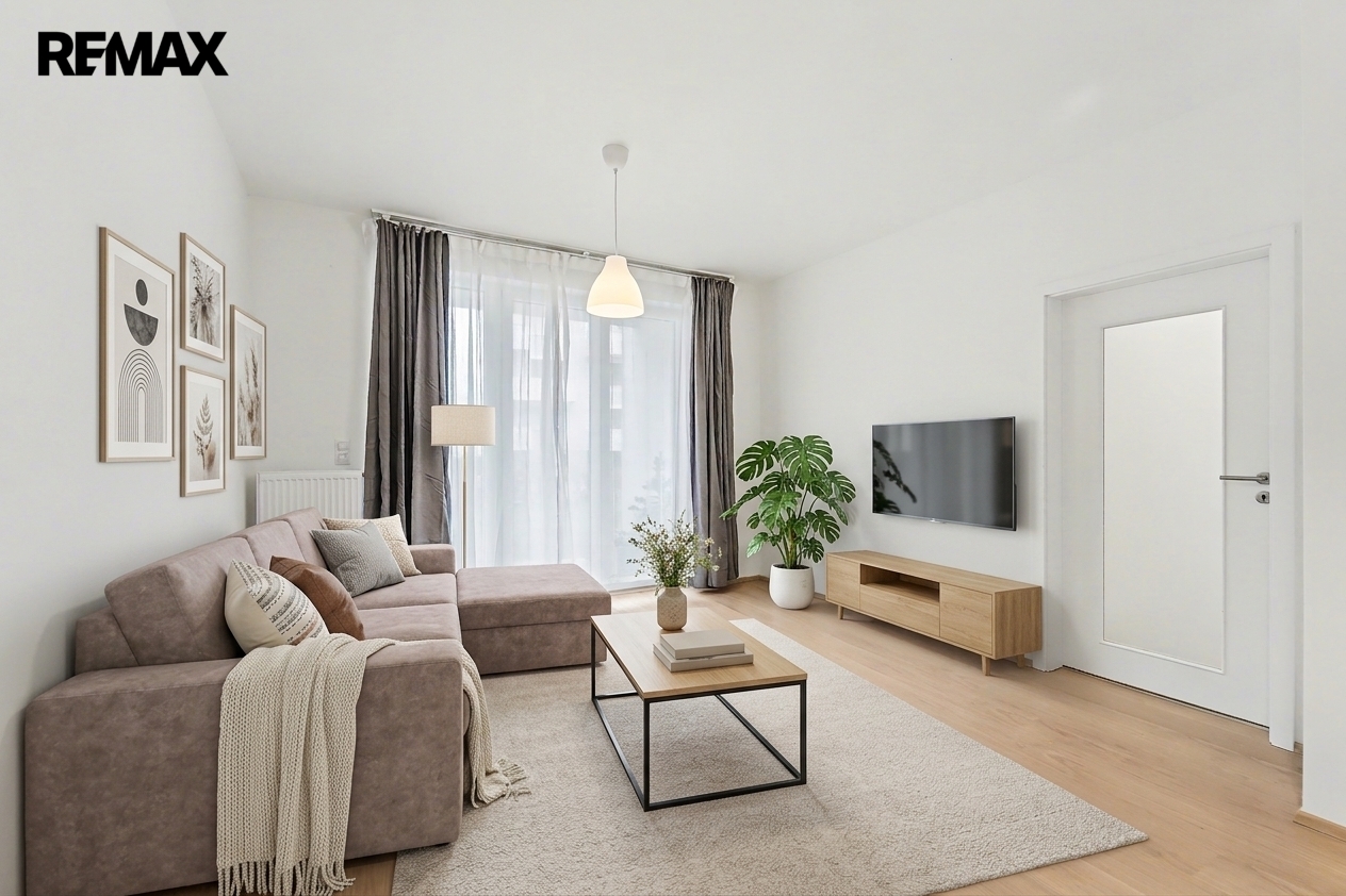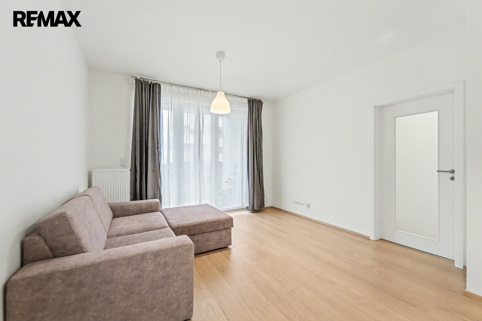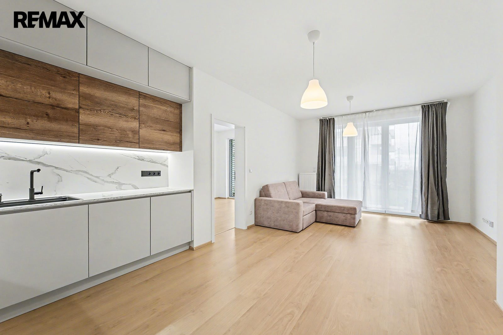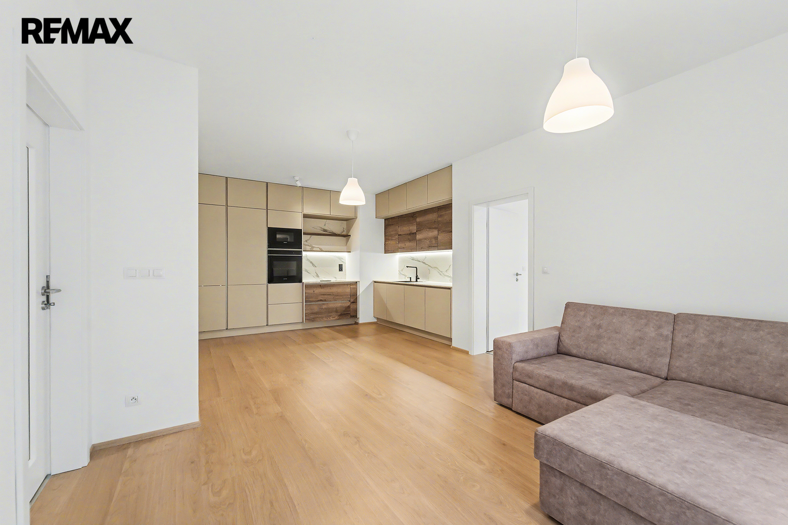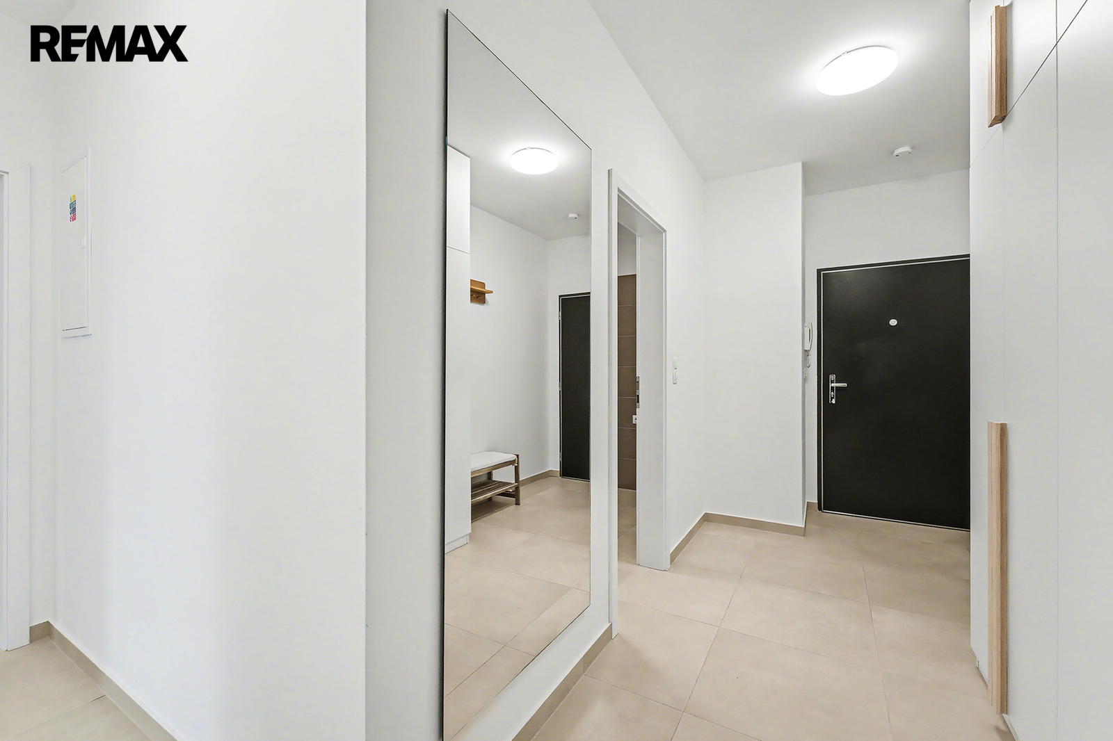 Je částečně vybavený – k dispozici je moderní kuchyňská linka se spotřebiči (lednice s mrazákem, sklokeramická deska, digestoř, myčka, elektrická a mikrovlnná trouba), rozkládací pohovka, šatna a vestavěné skříně v chodbě.