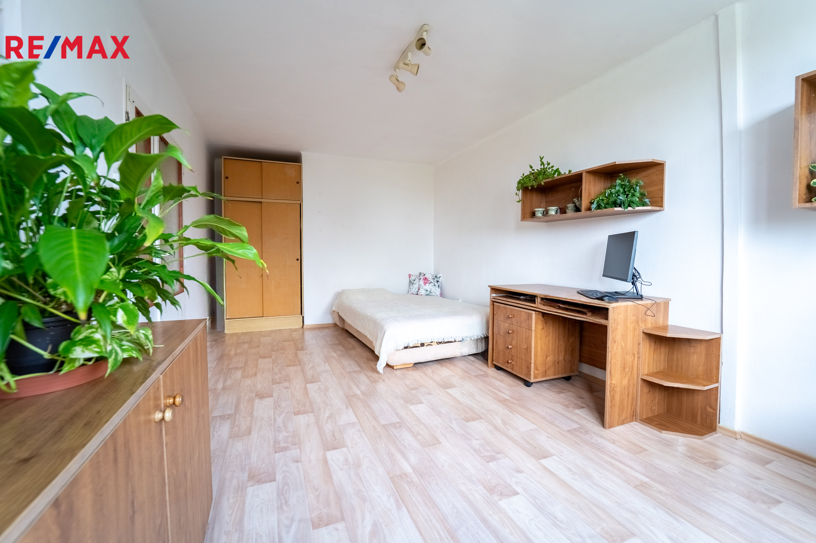 Bytová jednotka 1+1, po rekonstrukci (elektřina, odpady), se nachází ve 4. patře z 12 pater s výhledem do zeleně (školka). Dispoziční řešení: kuchyň s jídelnou, prostorná místnost, chodba s úložným prostorem a koupelna s oddělenou toaletou.
