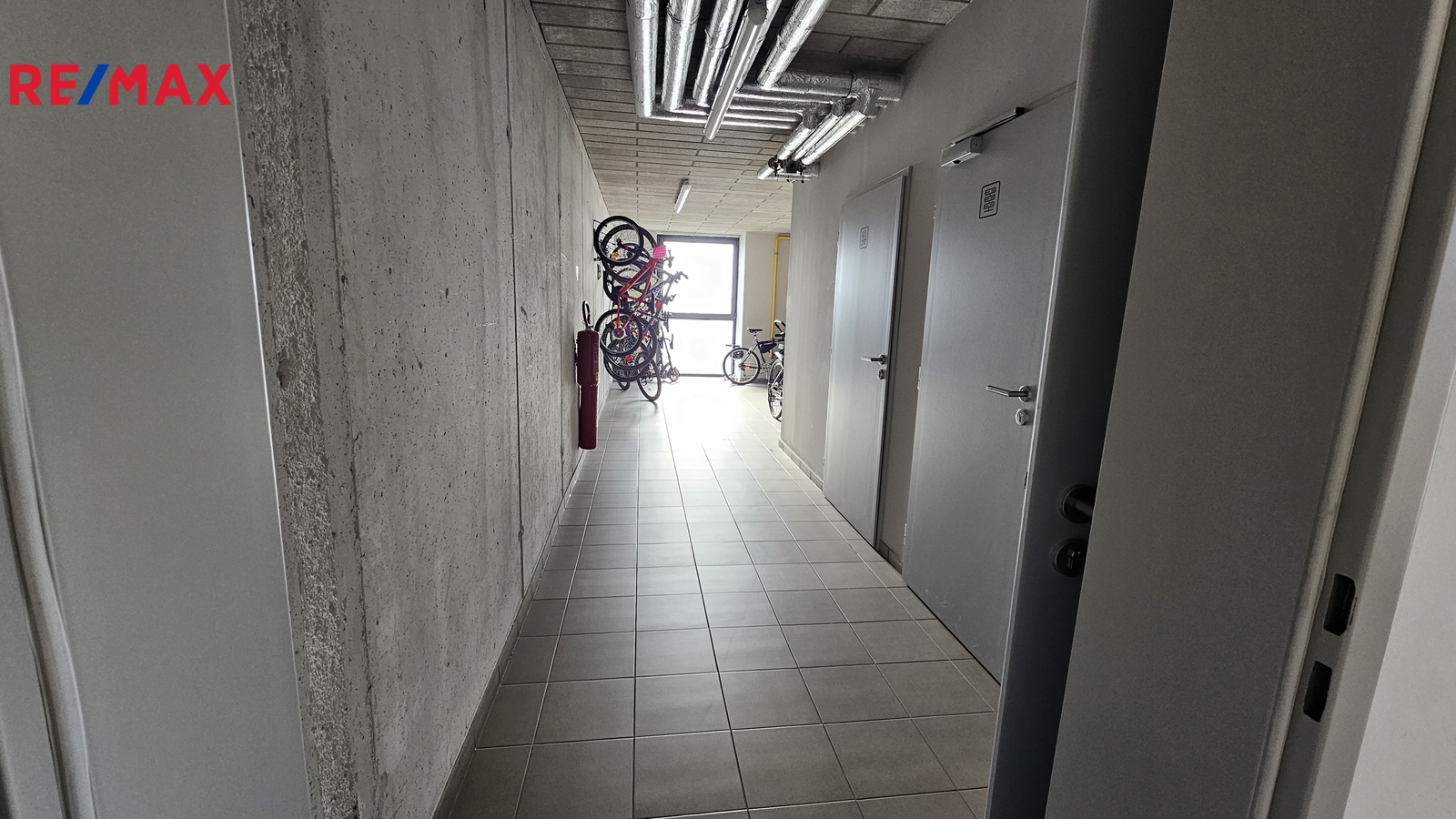 K bytu náleží sklepní kóje a nájemníci mohou využívat také společnou kolárnu. V domě je k dispozici výtah a zajištěný pravidelný úklid společných prostor, což přispívá k celkovému komfortu bydlení.