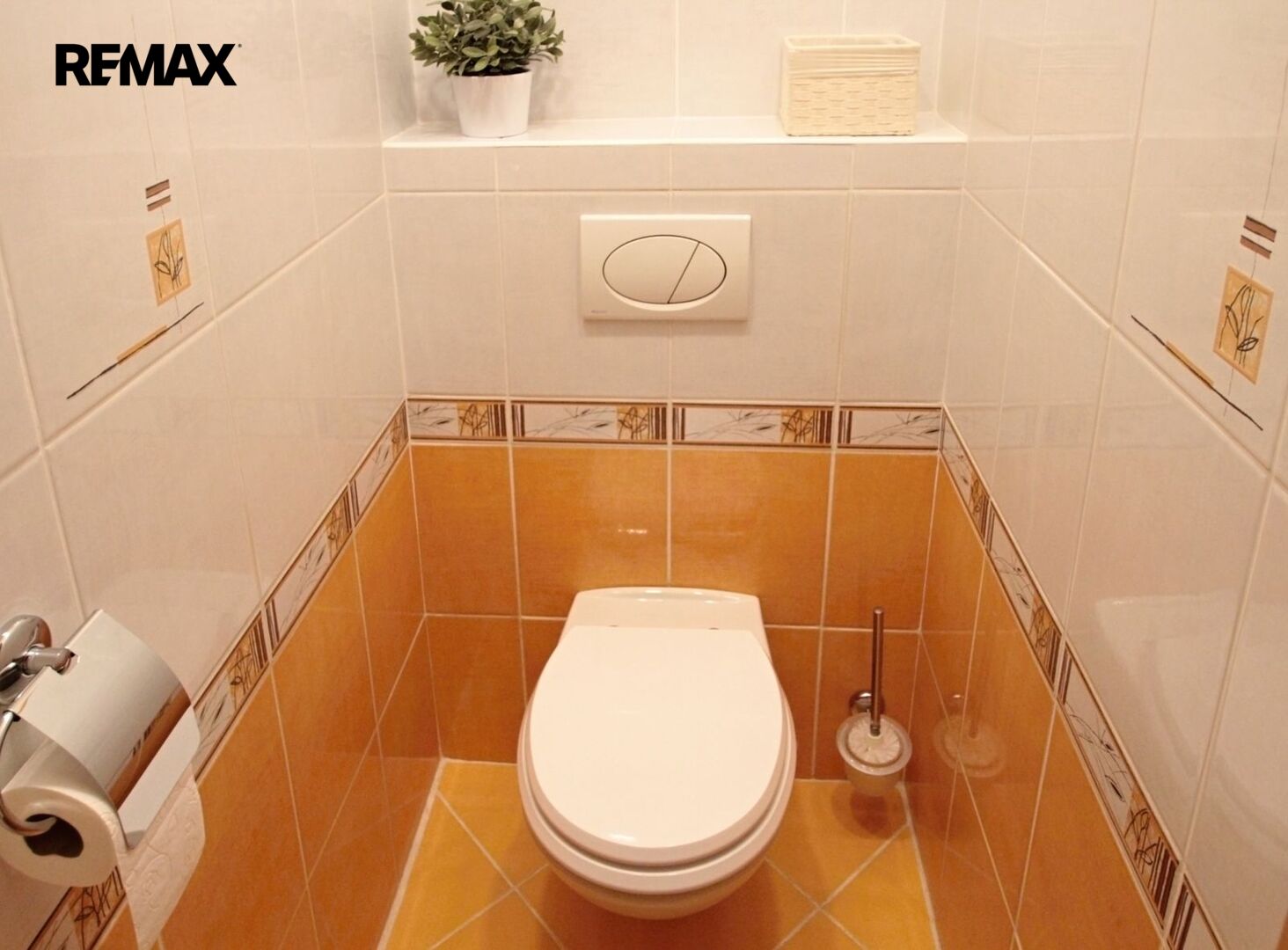 Dále je samostatné WC a koupelna disponující vanou, umyvadlem a koupelnovým nábytkem.