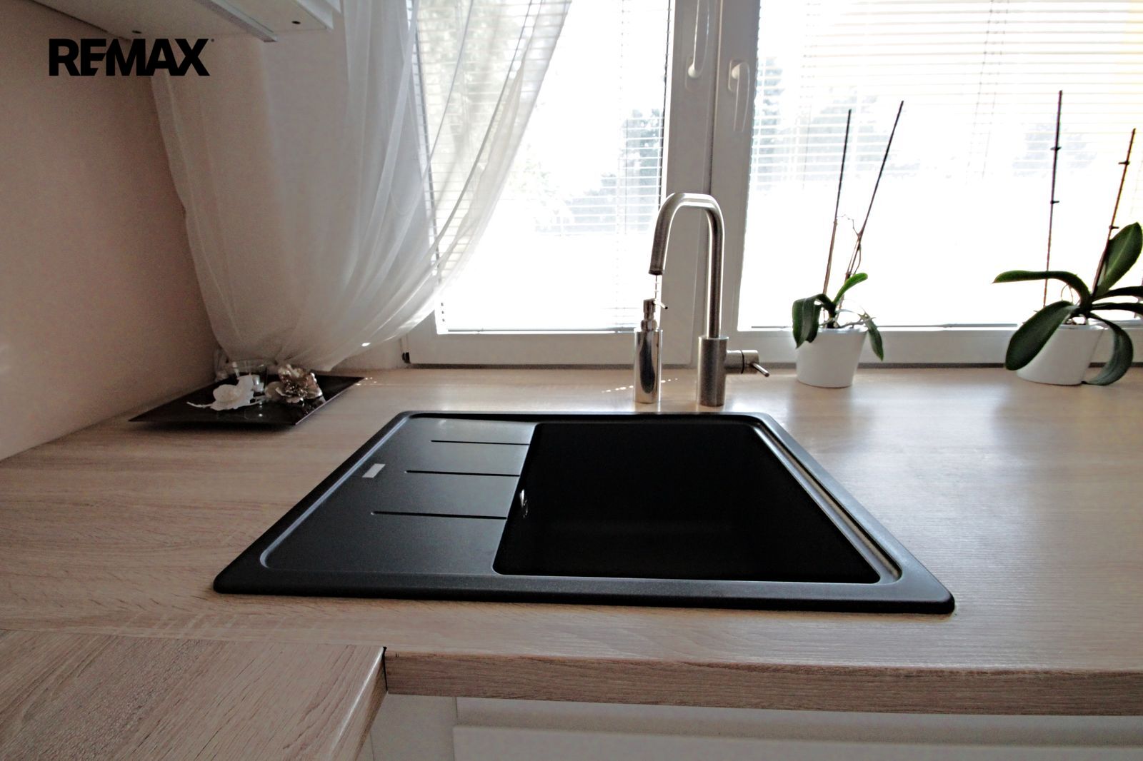 Kuchyňský kout je plně vybaven spotřebiči: plynový sporák, trouba, digestoř, lednice s mrazákem, mikrovlnná trouba a myčka nádobí.