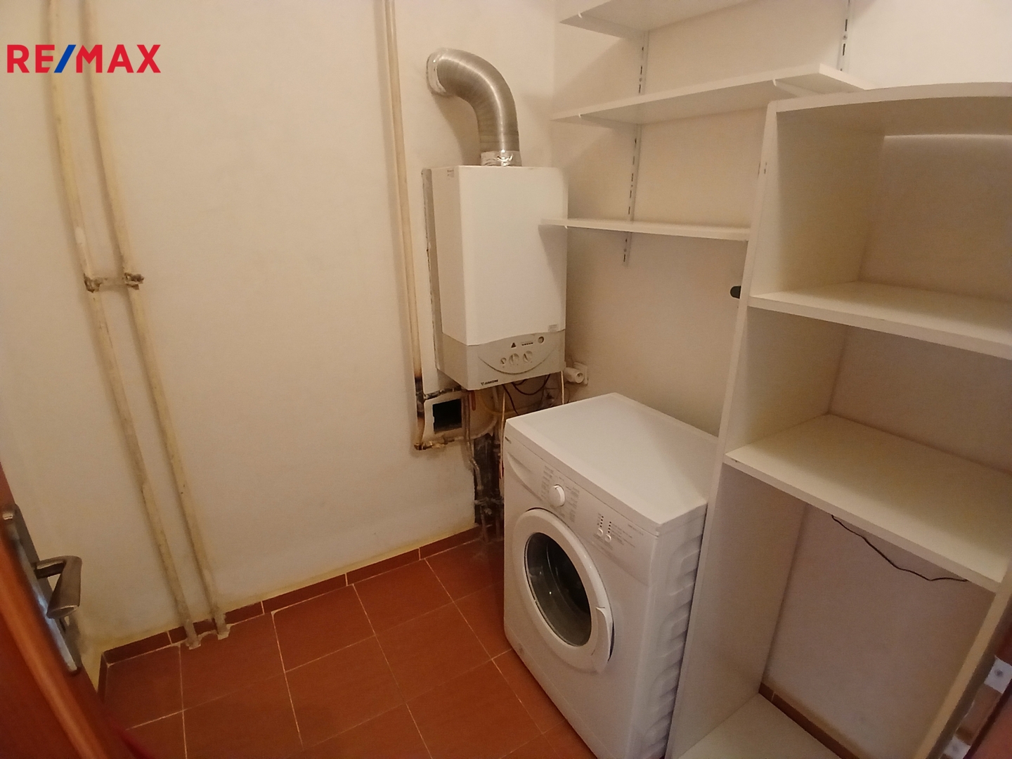 Nemovitost vyniká svou velmi dobrou kondicí a moderním vybavením, které zajišťuje komfortní a příjemné bydlení. V chodbě jsou dvě vestavěné skříně, k dispozici je lednička i pračka. Byt se pronajímá včetně vybavení, které vidíte na fotografiích. Vytápění bytu je zajištěno plynovým kotlem s radiátory, což poskytuje efektivní a ekonomické vytápění. Plynový kotel slouží také na ohřev teplé vody. Bytový dům je napojený na všechny potřebné inženýrské sítě - elektřinu, kanalizaci, vodovod a plynovod. Součástí pronájmu je také sklepní prostor pro uložení kol, sportovního vybavení atd.