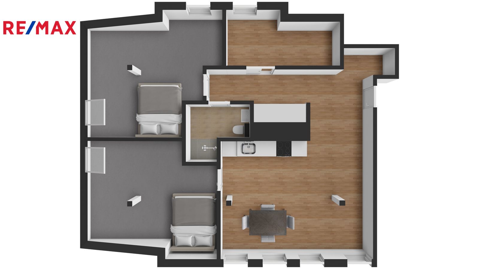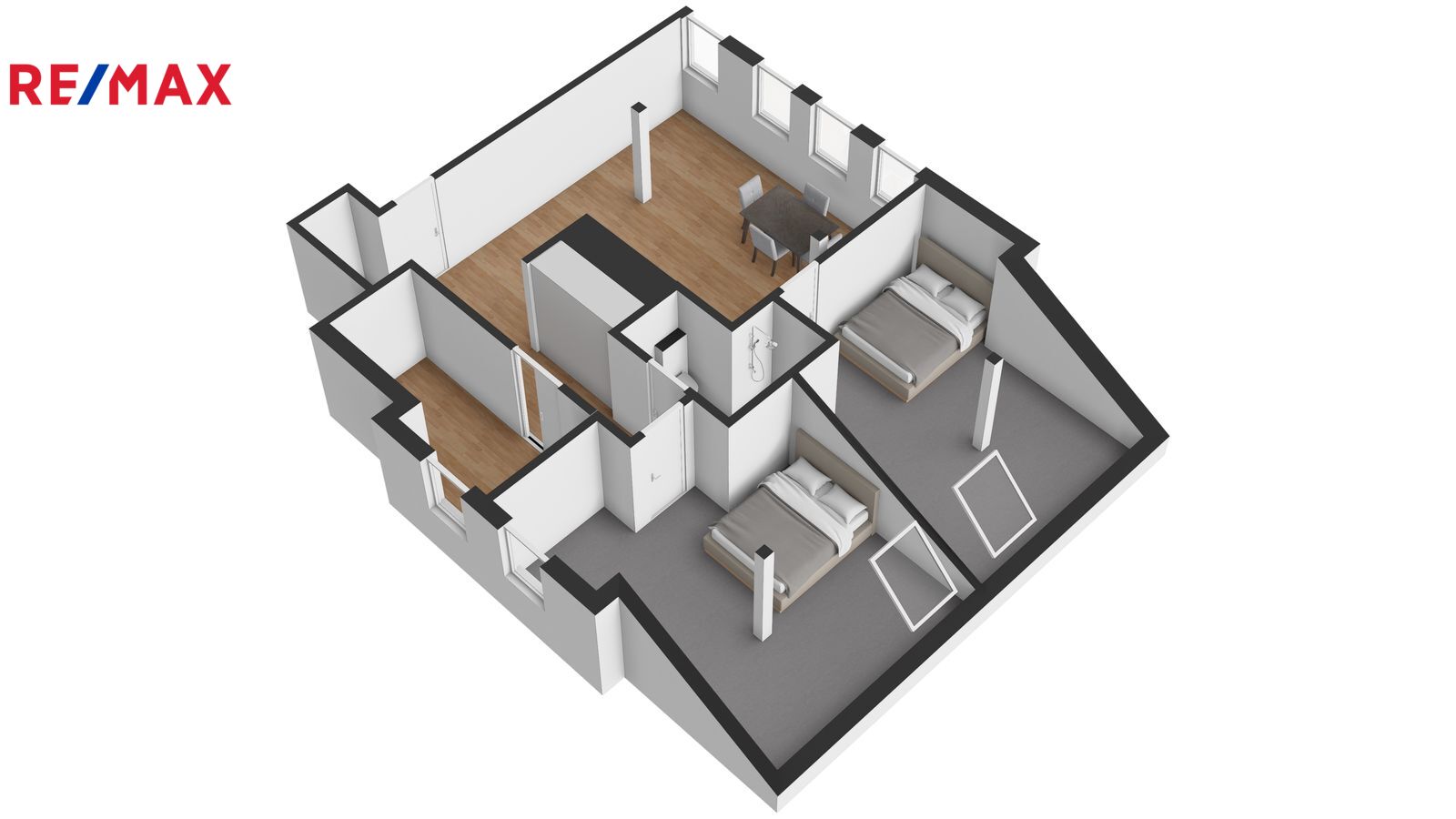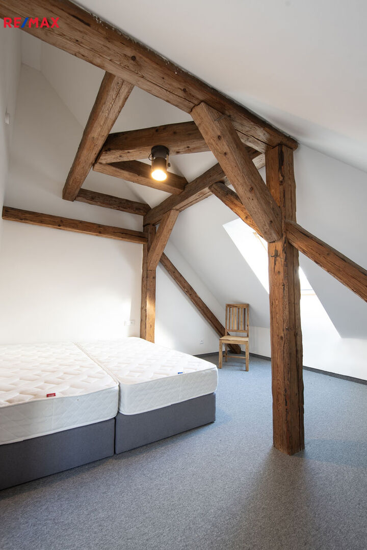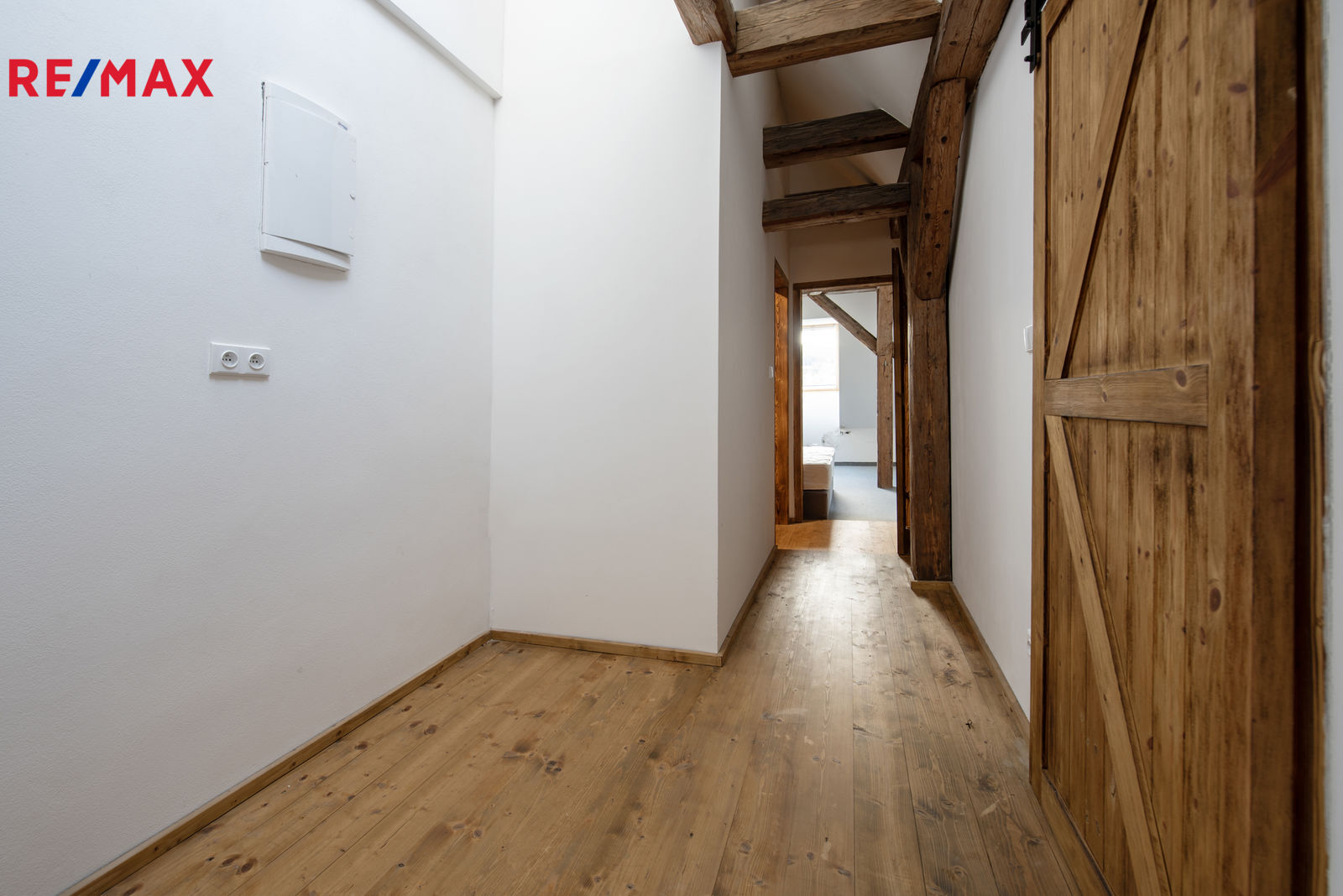 Nadstandartní vnitřní dispozice 3+kk na ploše 92 m2 nabídne dostatek prostoru i větší skupině lidí. Celý apartmán působí vzdušně a světle díky kombinaci klasických a střešních oken, odkud je krásný výhled do okolí. Horský charakter apartmánu je podtržen přiznanými původními střešními trámy.