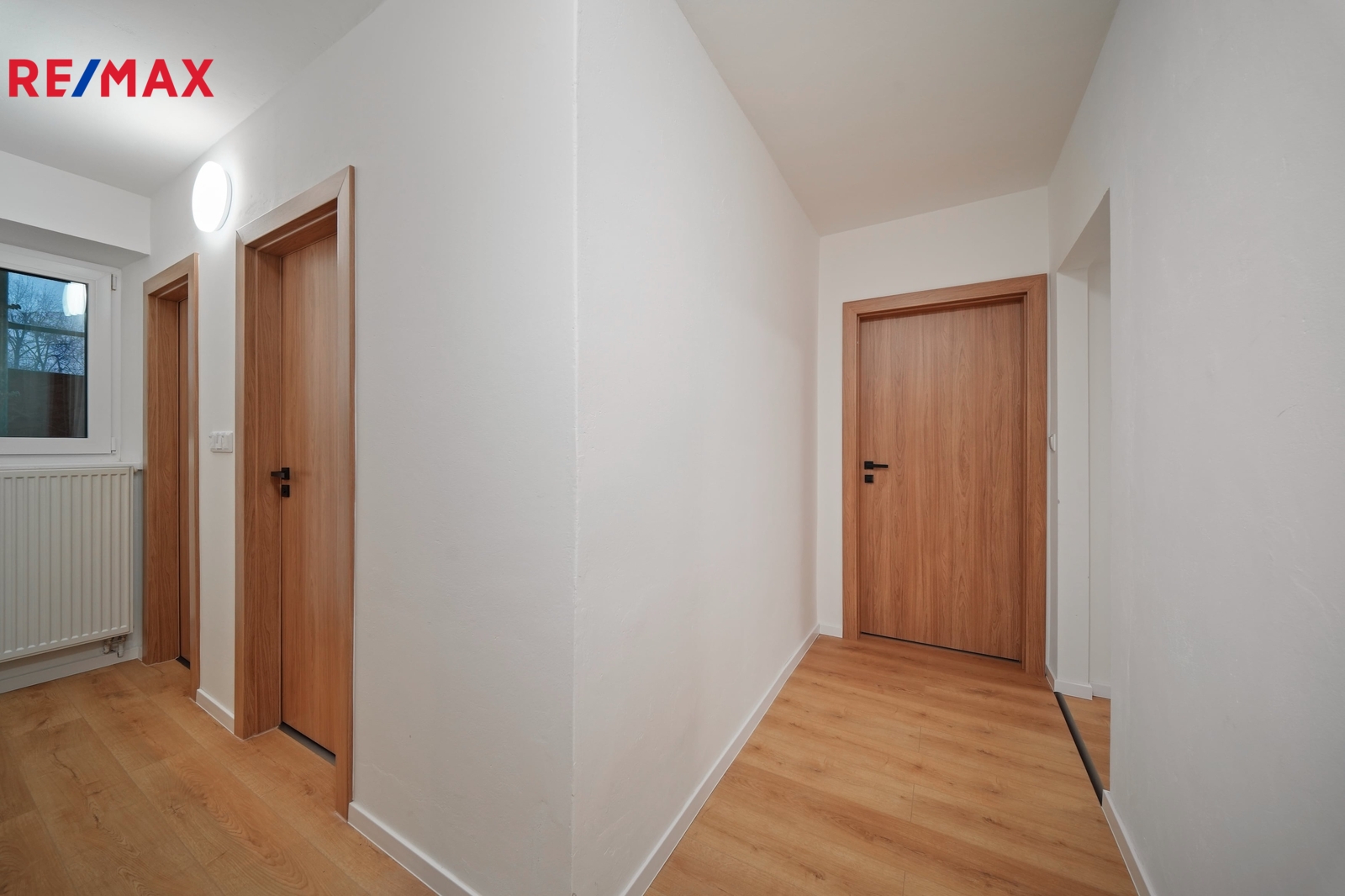 Nabízíme k pronájmu kompletně zrekonstruovaný byt 3+1 o celkové ploše 68,4 m². Nachází se ve zvýšeném přízemí cihlového domu se šesti bytovými jednotkami. Byt je světlý, orientovaný na východ a západ, a připravený k okamžitému nastěhování. Rekonstrukce byla dokončena letos a byt dosud nebyl obýván. Vše je tedy zcela nové a bez známek opotřebení.