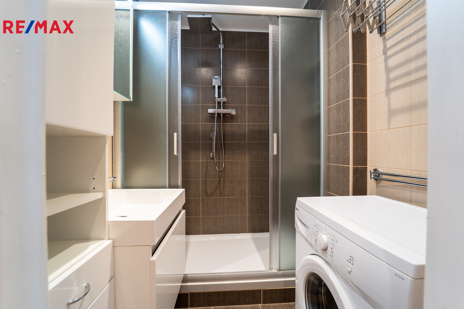 Součástí nájmu je kuchyňská linka, digestoř, plynový sporák s elektrickou troubou, lednice, mikrovlnka, kulatý stůl, v obýváku stěna a konferenční stolek, v ložnici větší šatní skříň, v koupelně pračka, skříňky, umyvadlo, zrcadlo, toaleta, sprchový kout, v šatně regály.