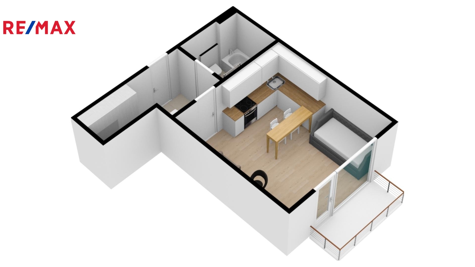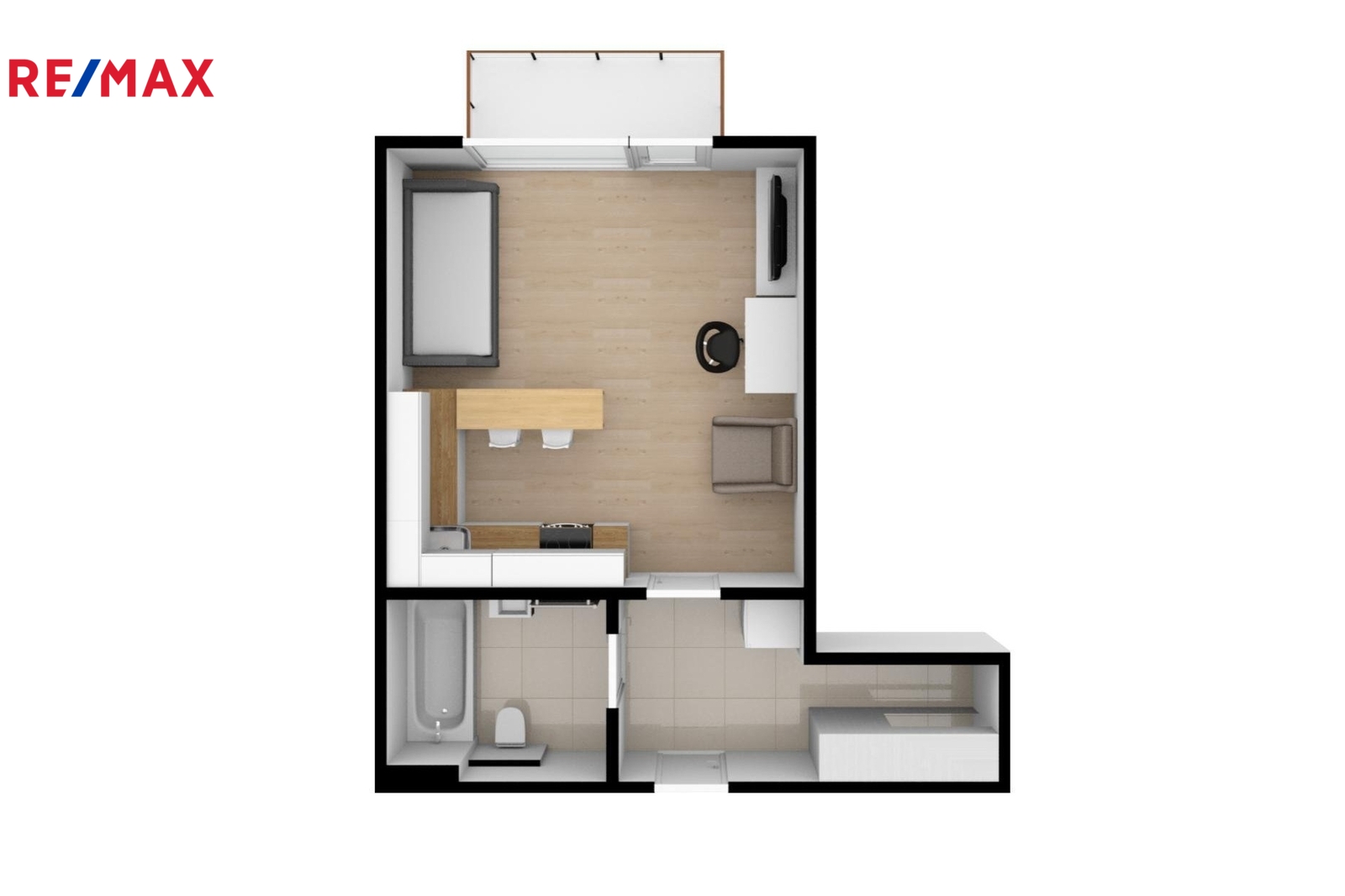 Prostor je prakticky řešen: vstupní chodba s prostornou vestavěnou skříní, koupelna s vanou a WC a hlavní obytná místnost s velkorysou kuchyňskou linkou vybavenou vestavěnými spotřebiči (elektrická trouba, sklokeramická varná deska, myčka nádobí). Díky velkému francouzskému oknu je obytná část světlá a slunná. Součástí bytu je také balkón, ideální pro ranní kávu, krátký odpočinek po práci nebo klidné posezení. Vytápění a ohřev vody jsou zajištěny ústředním plynovým vytápěním. Dům je moderní a dobře udržovaný a splňuje energetickou třídu PENB B, což znamená velmi úsporný provoz.