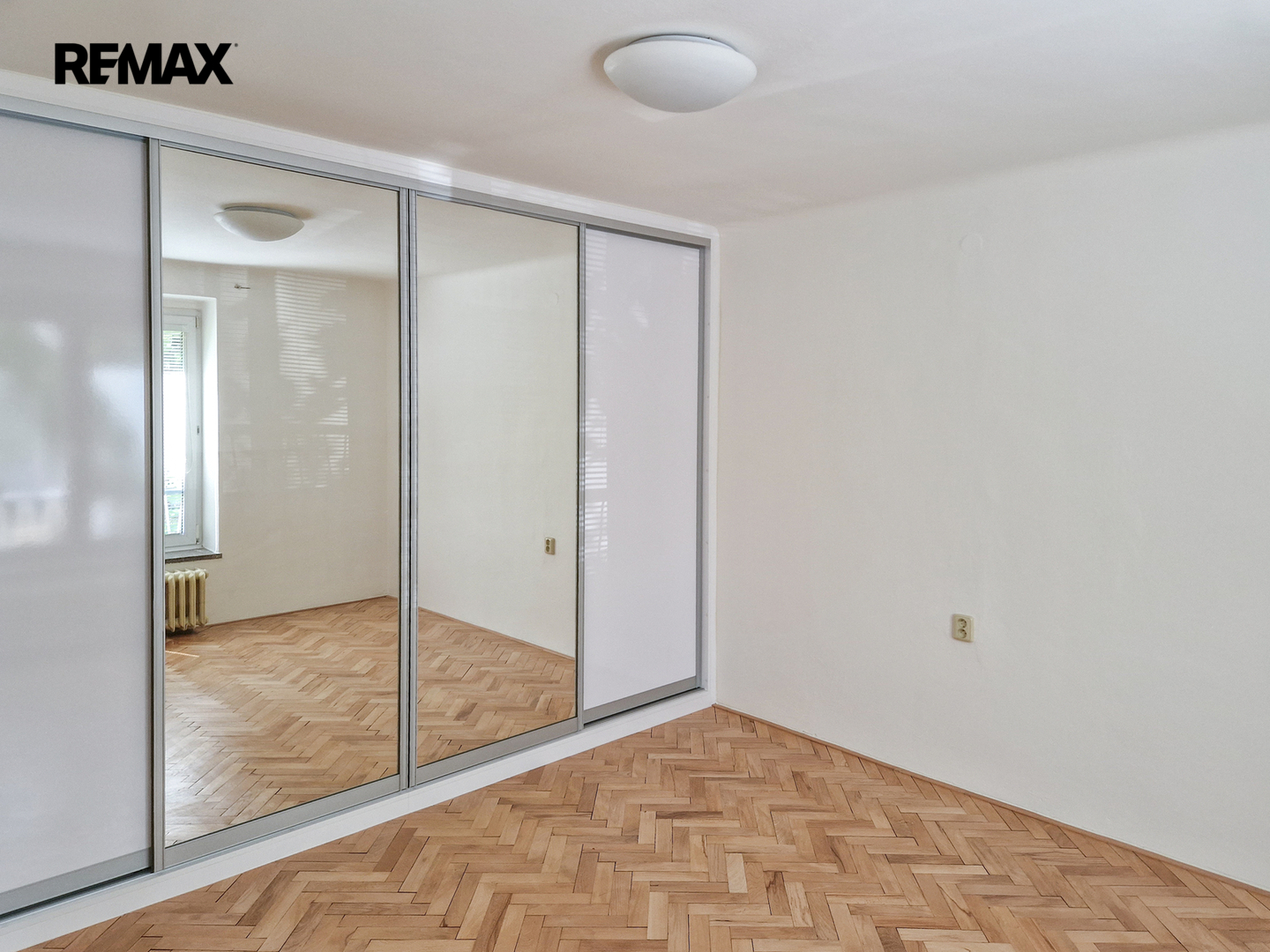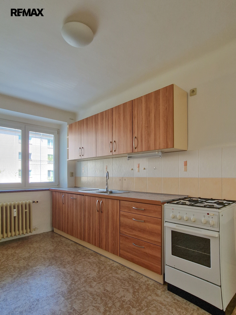 Byt se nachází v 1. nadzemním podlaží a dispozičně nabízí ložnici s prostornou vestavěnou skříní, obývací pokoj, samostatnou kuchyň s plynovým sporákem, ledničkou a pračkou, koupelnu, toaletu a chodbu s další vestavěnou skříní.