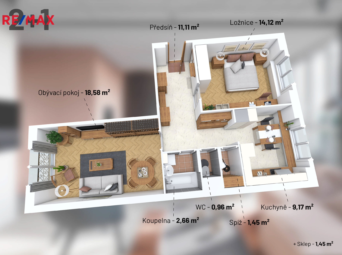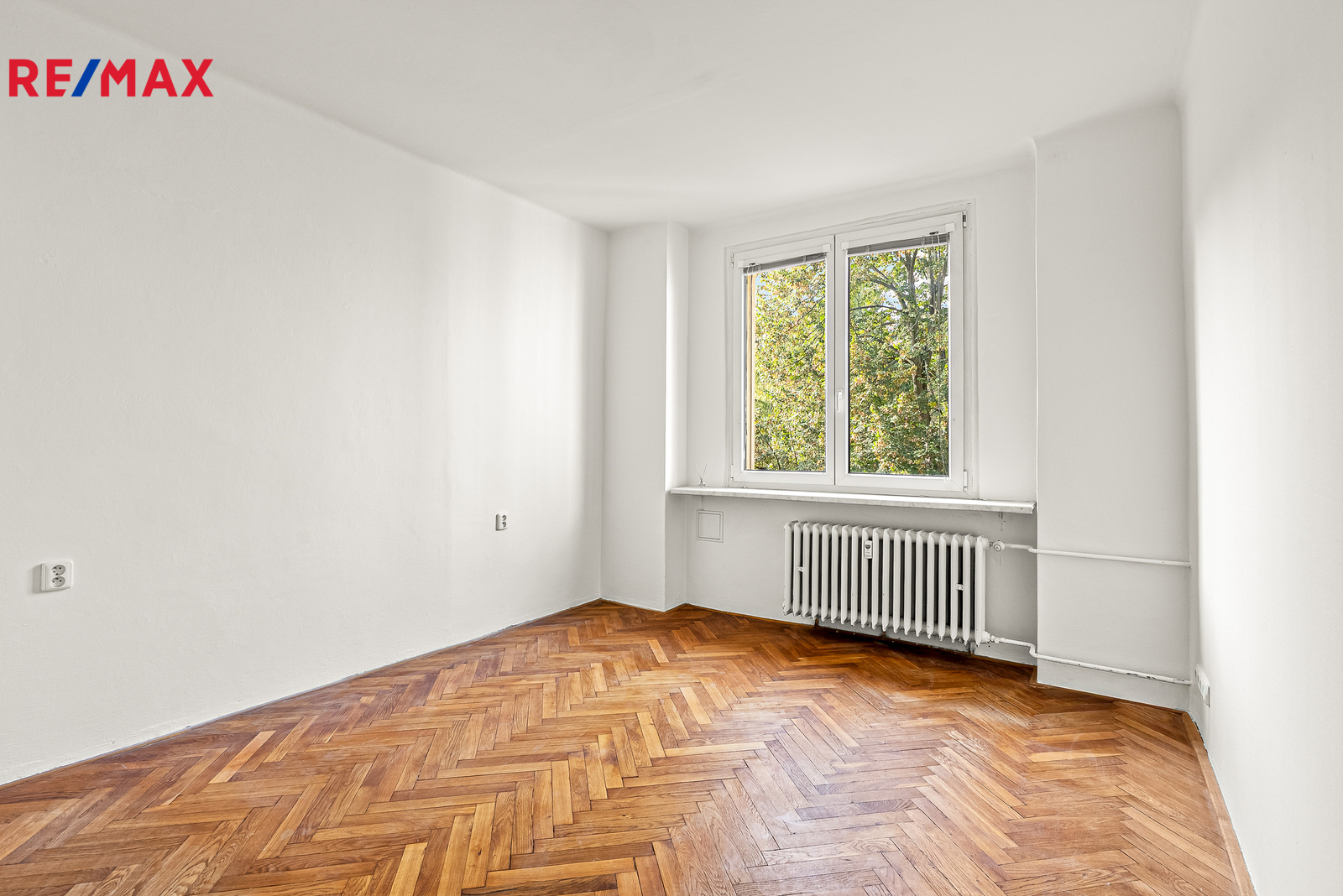 Velkou výhodou bytu je komora na uskladnění věcí přímo v bytě a situace kuchyně a ložnice do zeleného vnitrobloku. K bytu náleží sklepní koje.