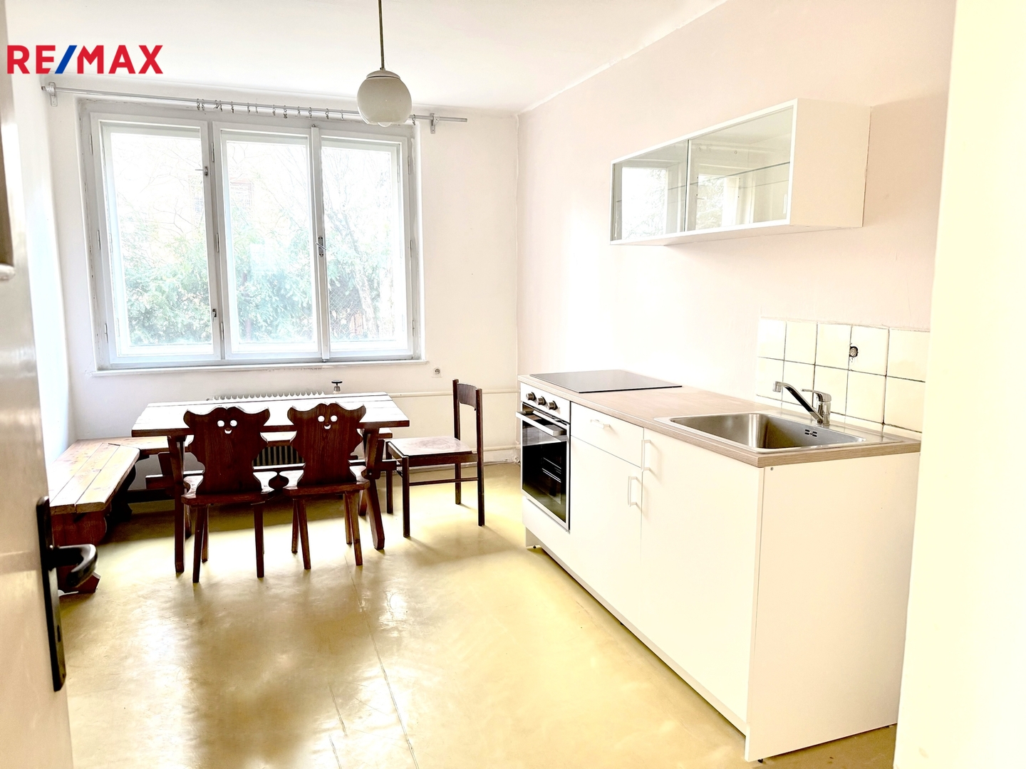 Jednotka je částečně vybavená – k dispozici je nová menší kuchyňská linka včetně trouby a lednice. Ostatní části domu jsou v původním, udržovaném stavu, včetně koupelny, toalety, podlah a dřevěných oken. V pokojích jsou parkety, v kuchyni lino.