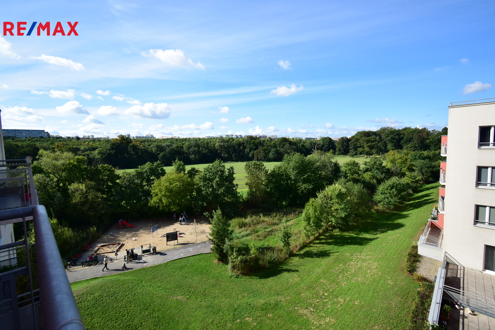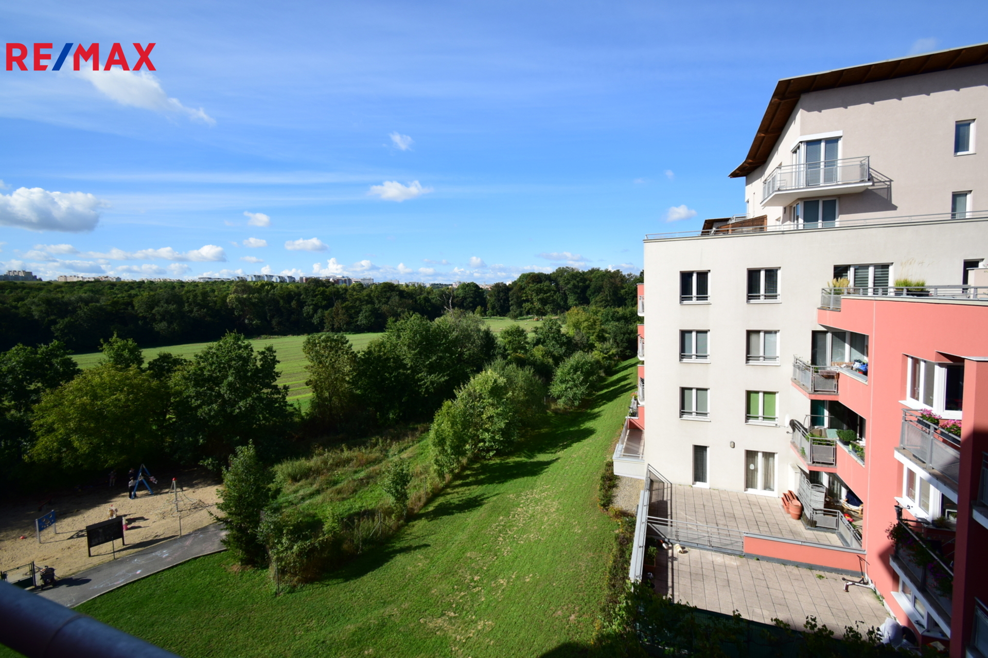 Balkon s možností posezení s výhledem do zeleně